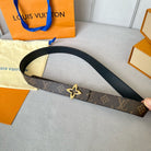 LV Flowergram 30mm Reversible Belt Gold Buckle Black Brown Leather
