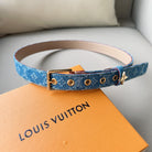LV FLOWERGRAM ARDILLON 30MM BELT LIGHT BLUE MONOGRAM DENIM GOLD HARDWARE