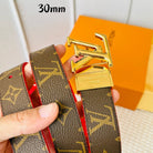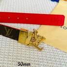 LV Initiales 30mm Reversible Belt Gold Rotating Buckle Red Brown Leather