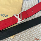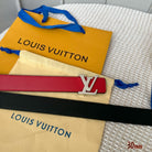 LV Initiales 30mm Reversible Belt Silver Buckle Red Black Leather