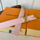 PRETTY LV 30MM REVERSIBLE BELT IN LIGHT PINK CALFSKIN GOLD HARDWARE