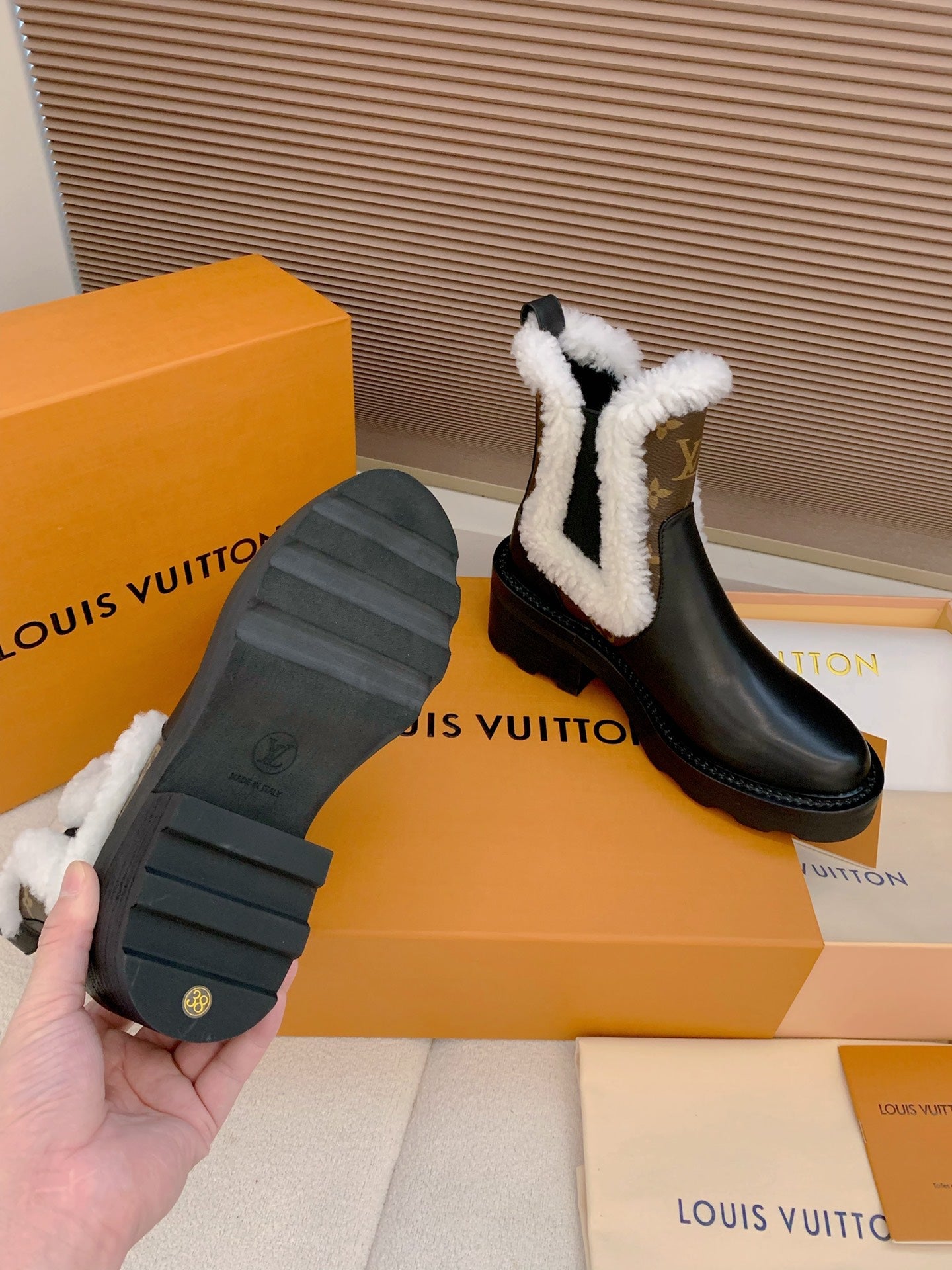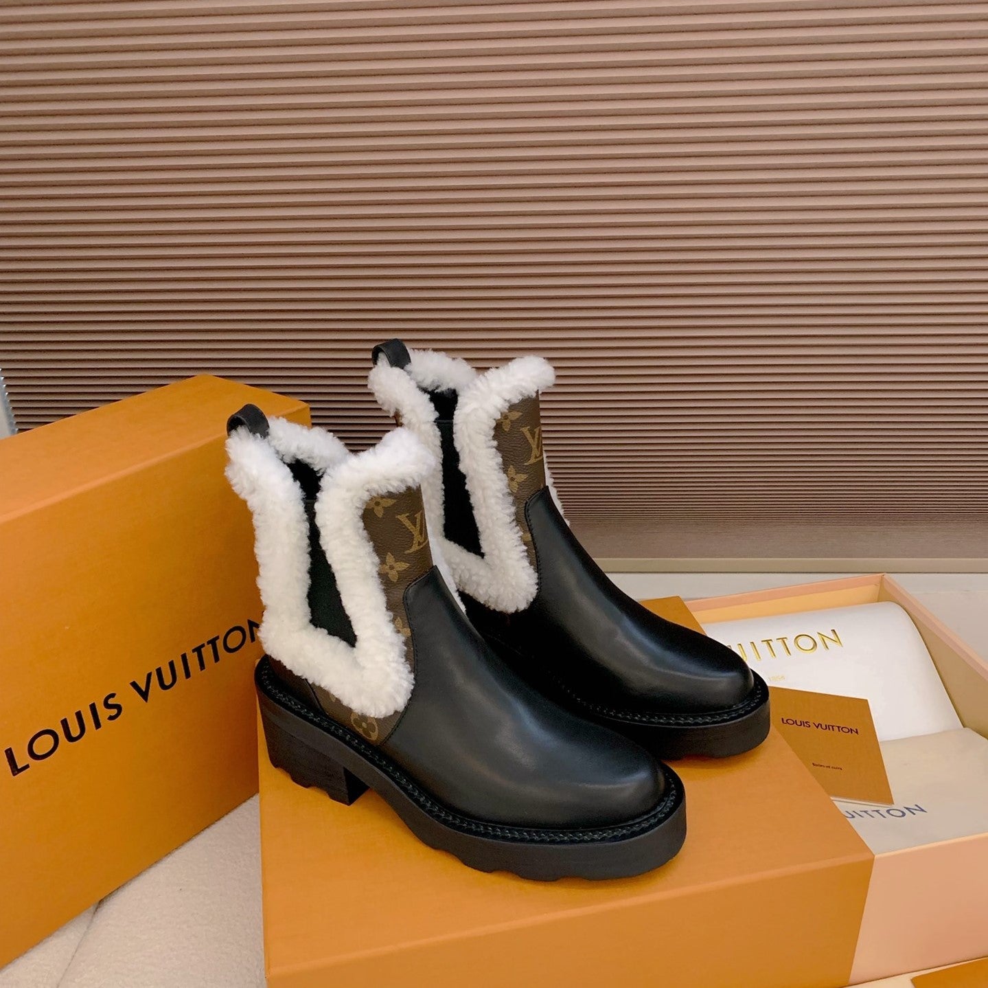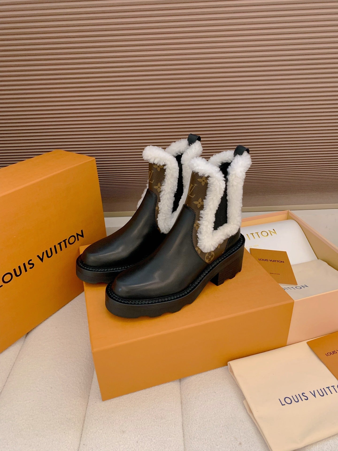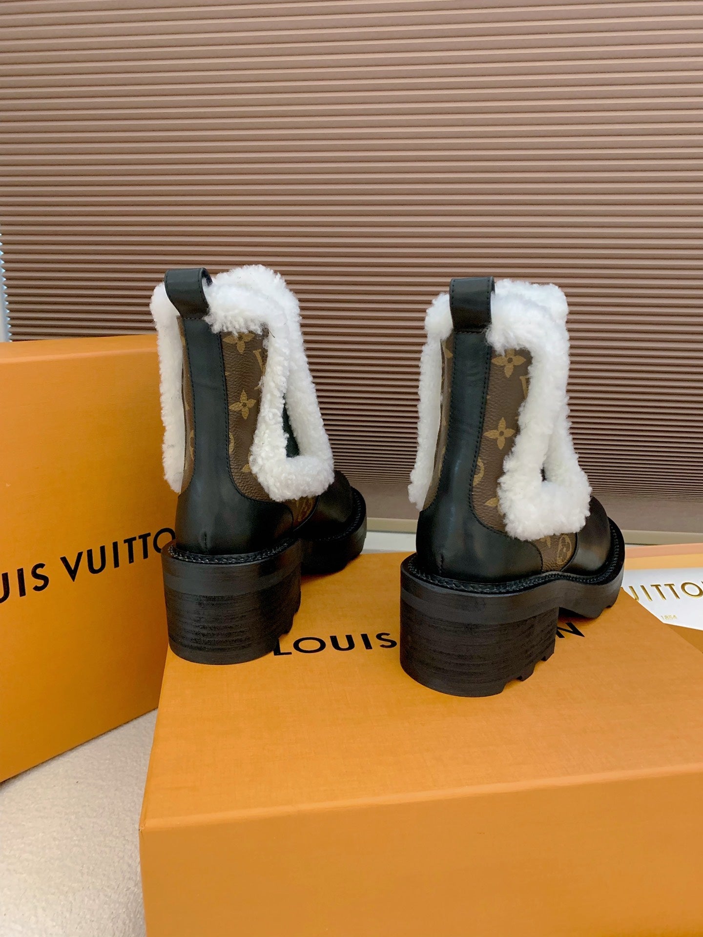 LV 25 Beaubourg Ankle Boots 40mm Black Brown Monogram Canvas & Cowhide Fur 556842