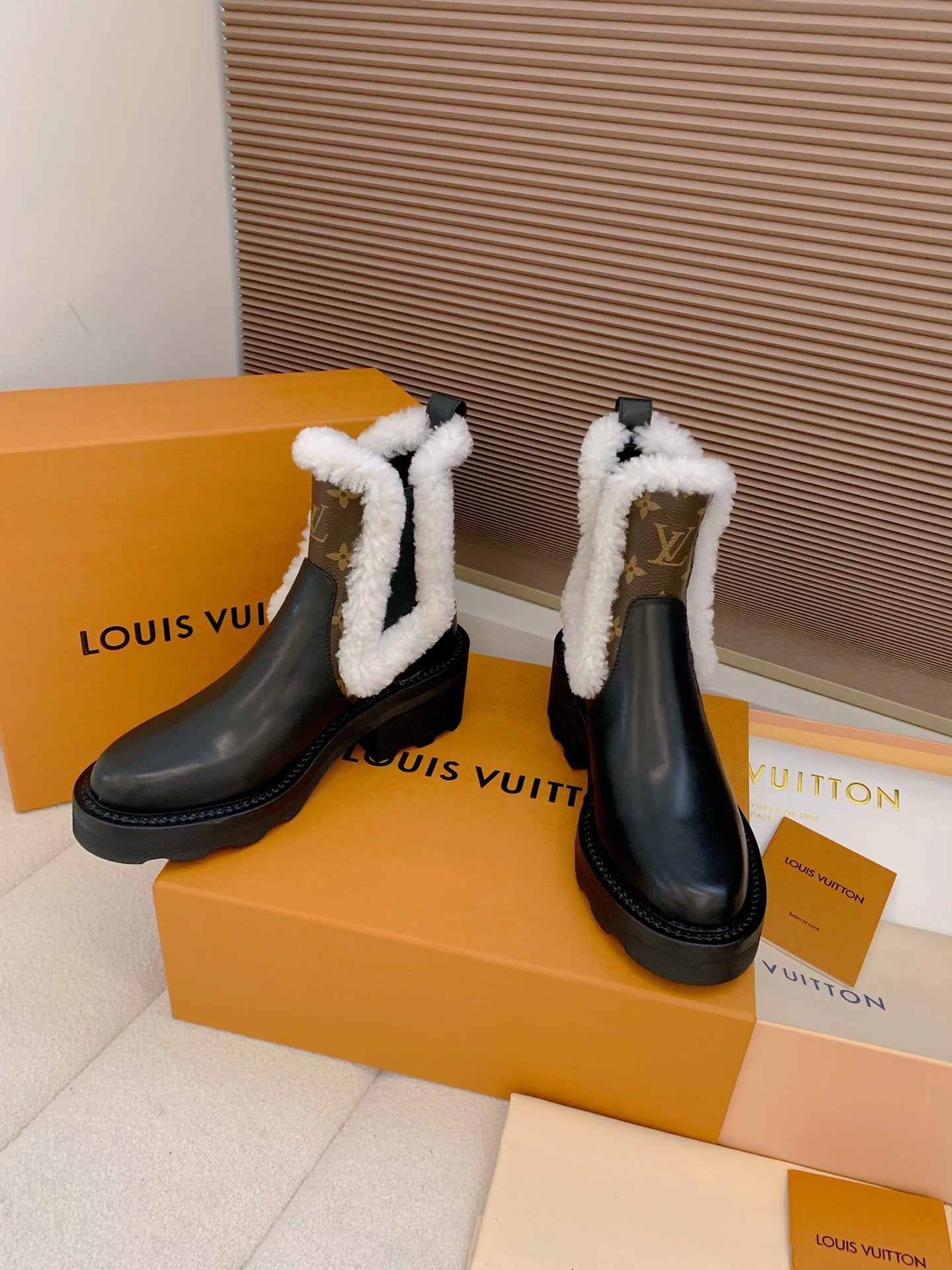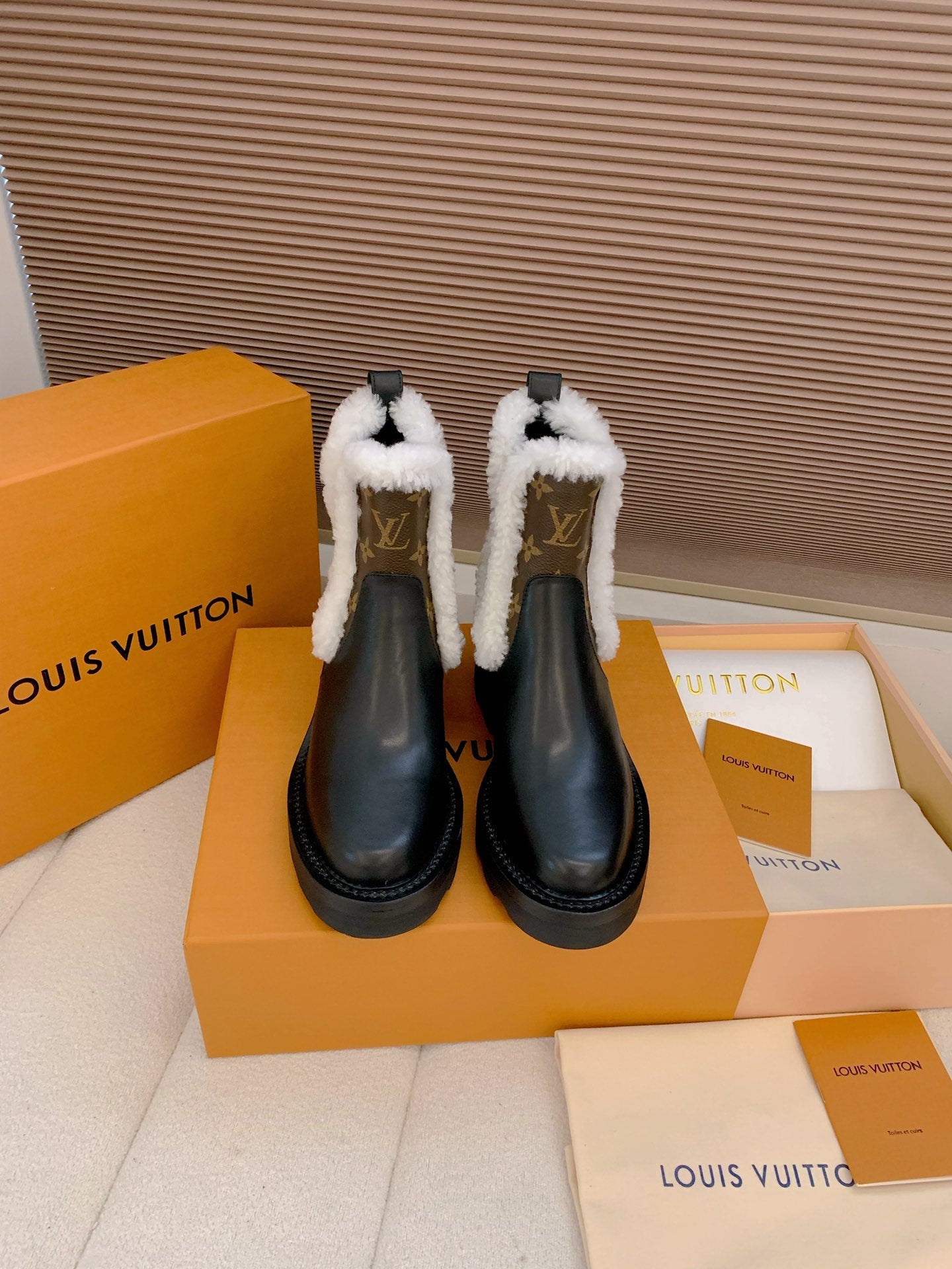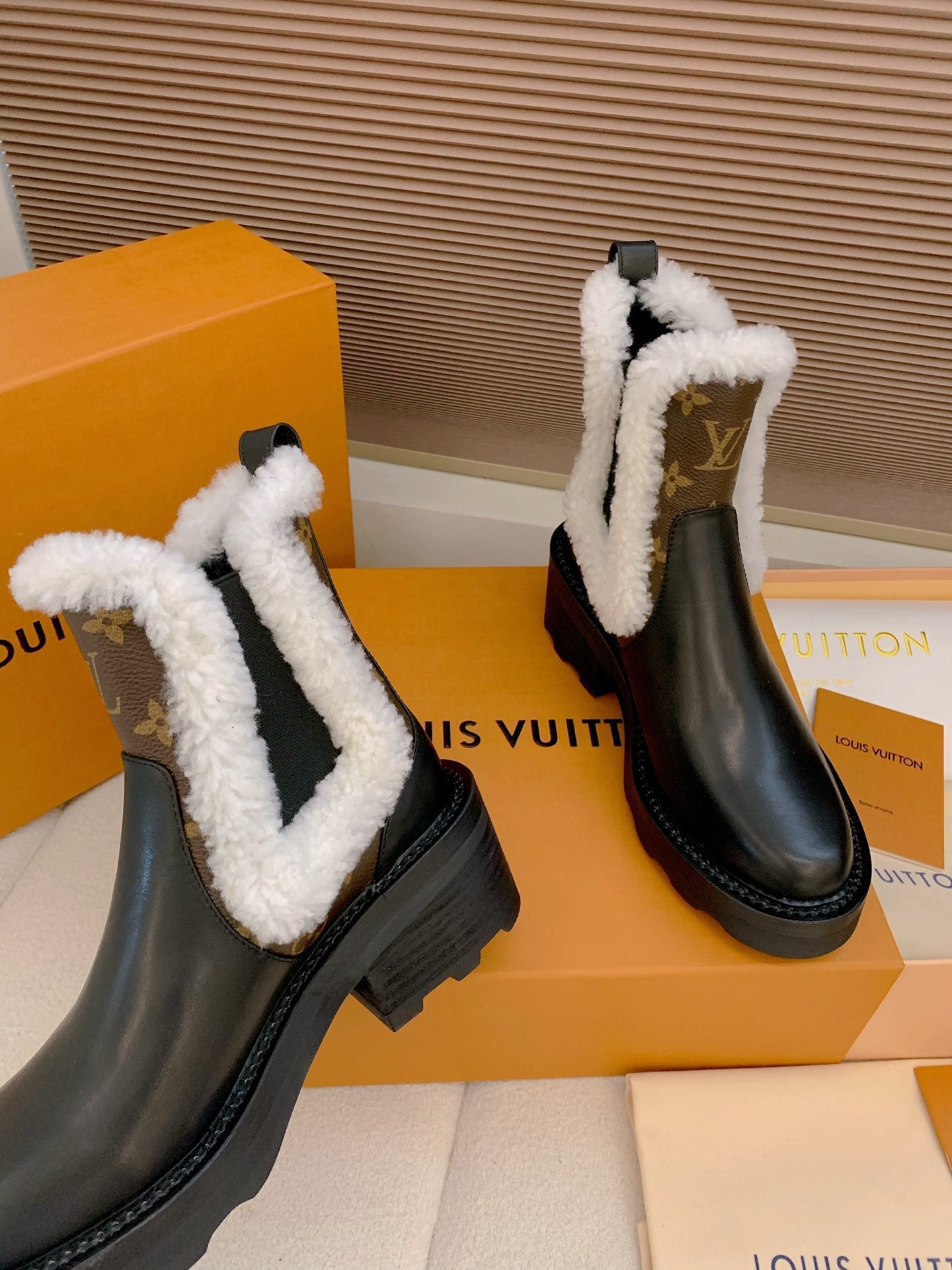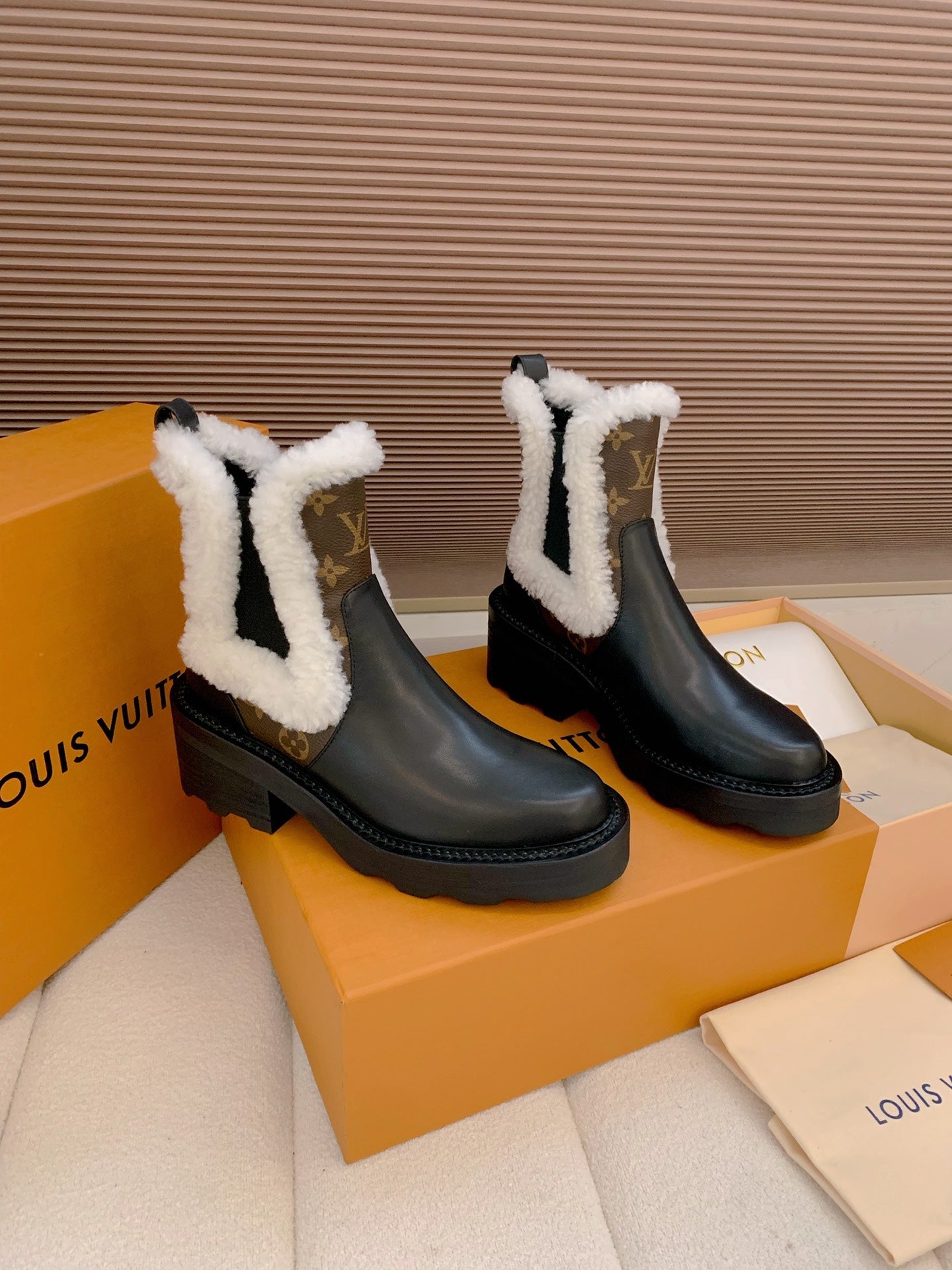 LV 25 Beaubourg Ankle Boots 40mm Black Brown Monogram Canvas & Cowhide Fur 556842