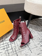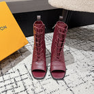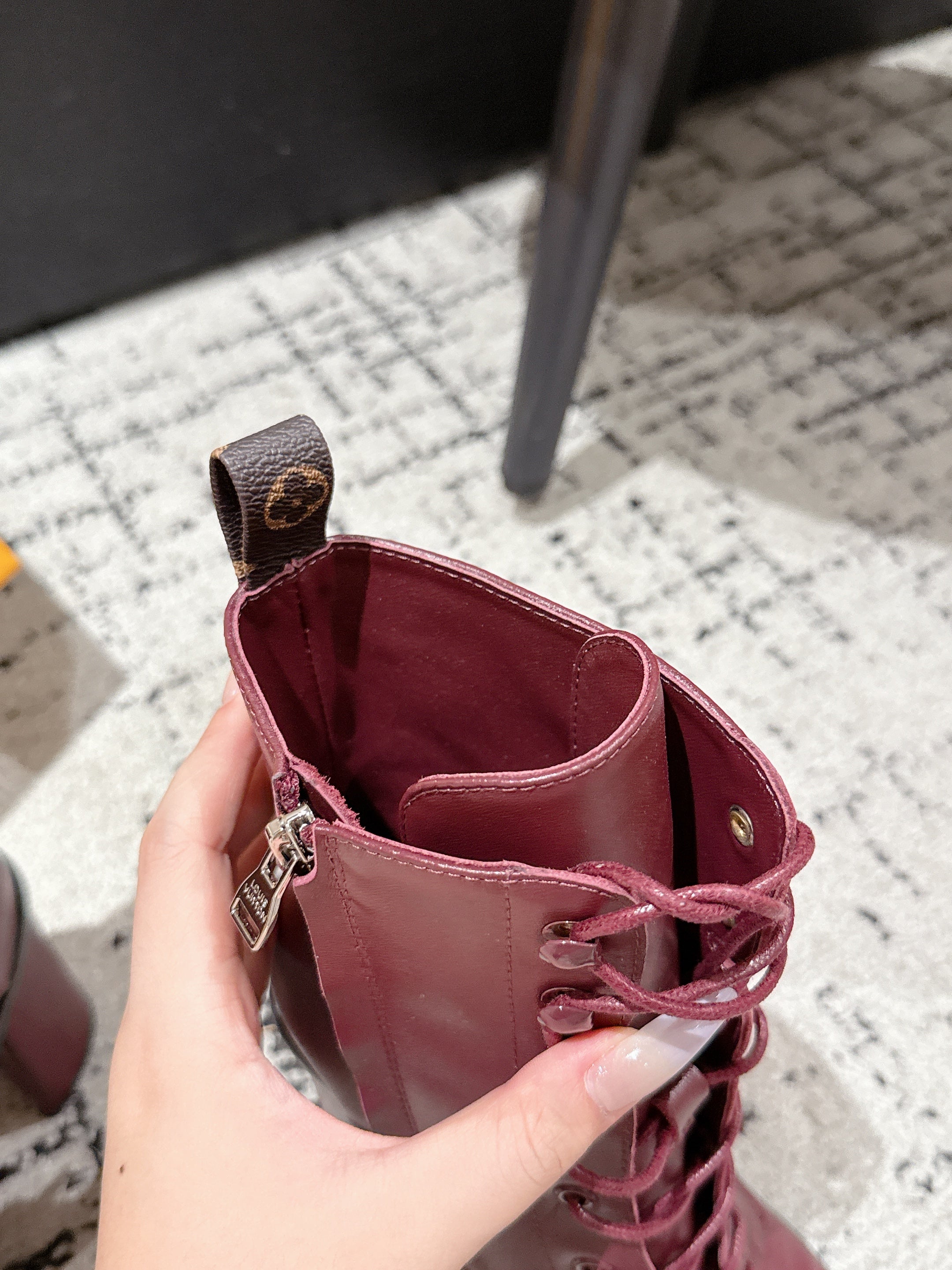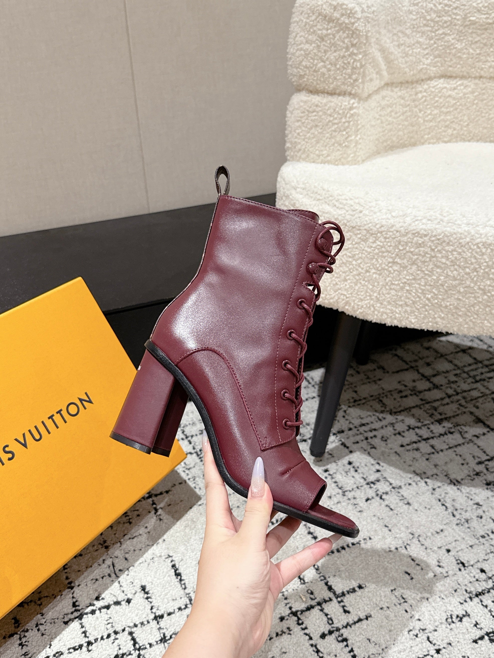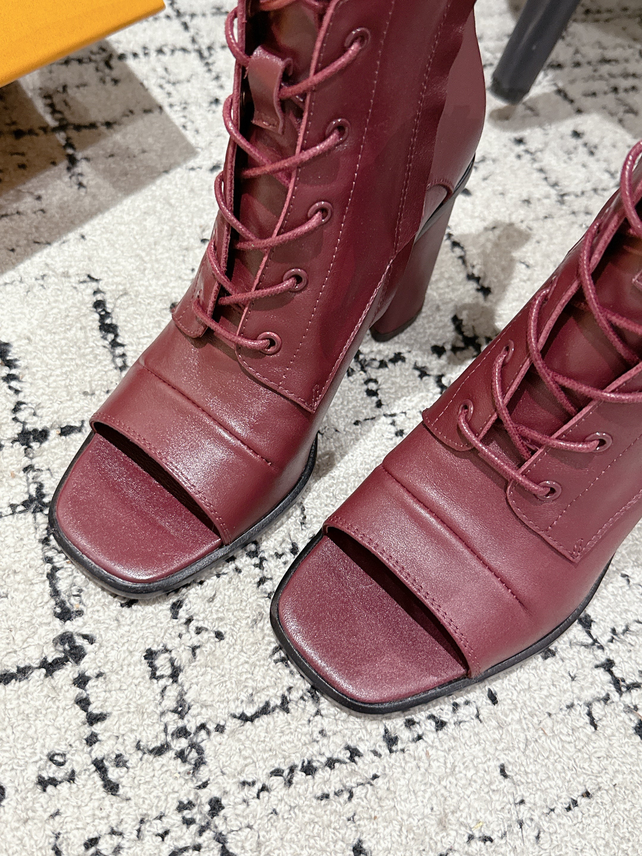 LV Berlin Boots 85mm Ecru Burgundy Smooth Calfskin 514456
