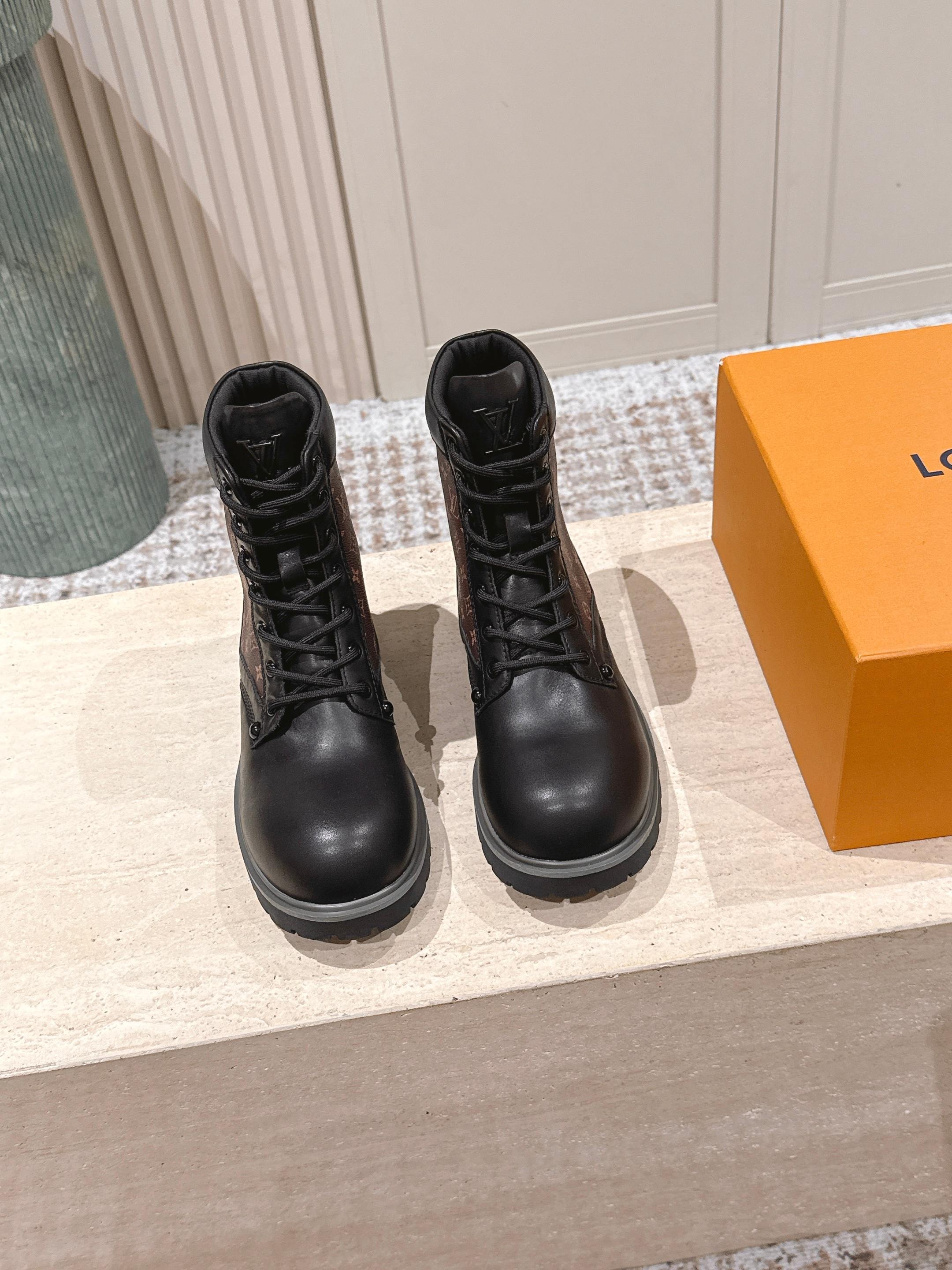 LV Boot Ranger Boots Black Brown Monogram Canvas & Cowhide 556605