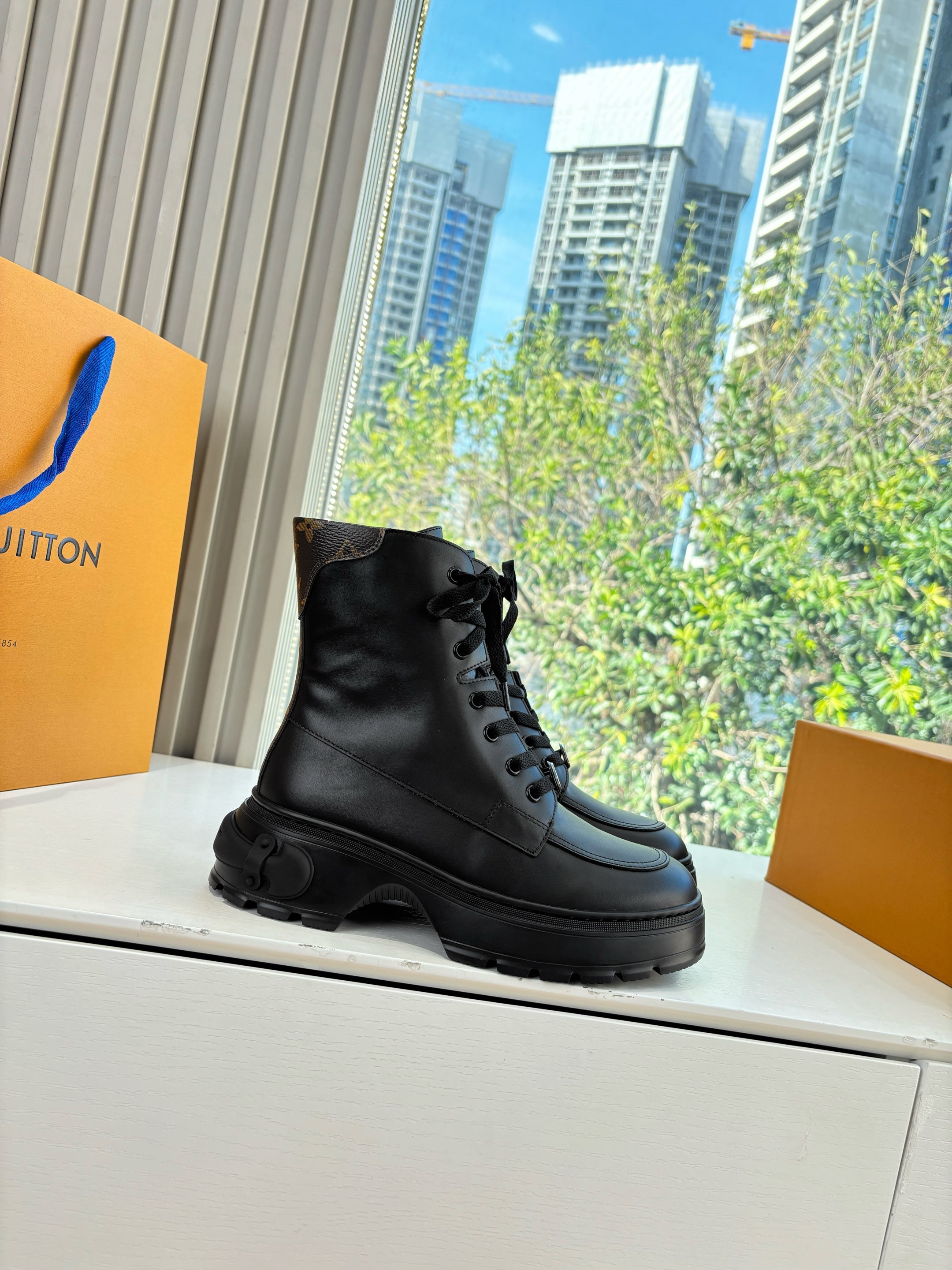 Lv Laureate Desert Boots Black Cowhide 548797