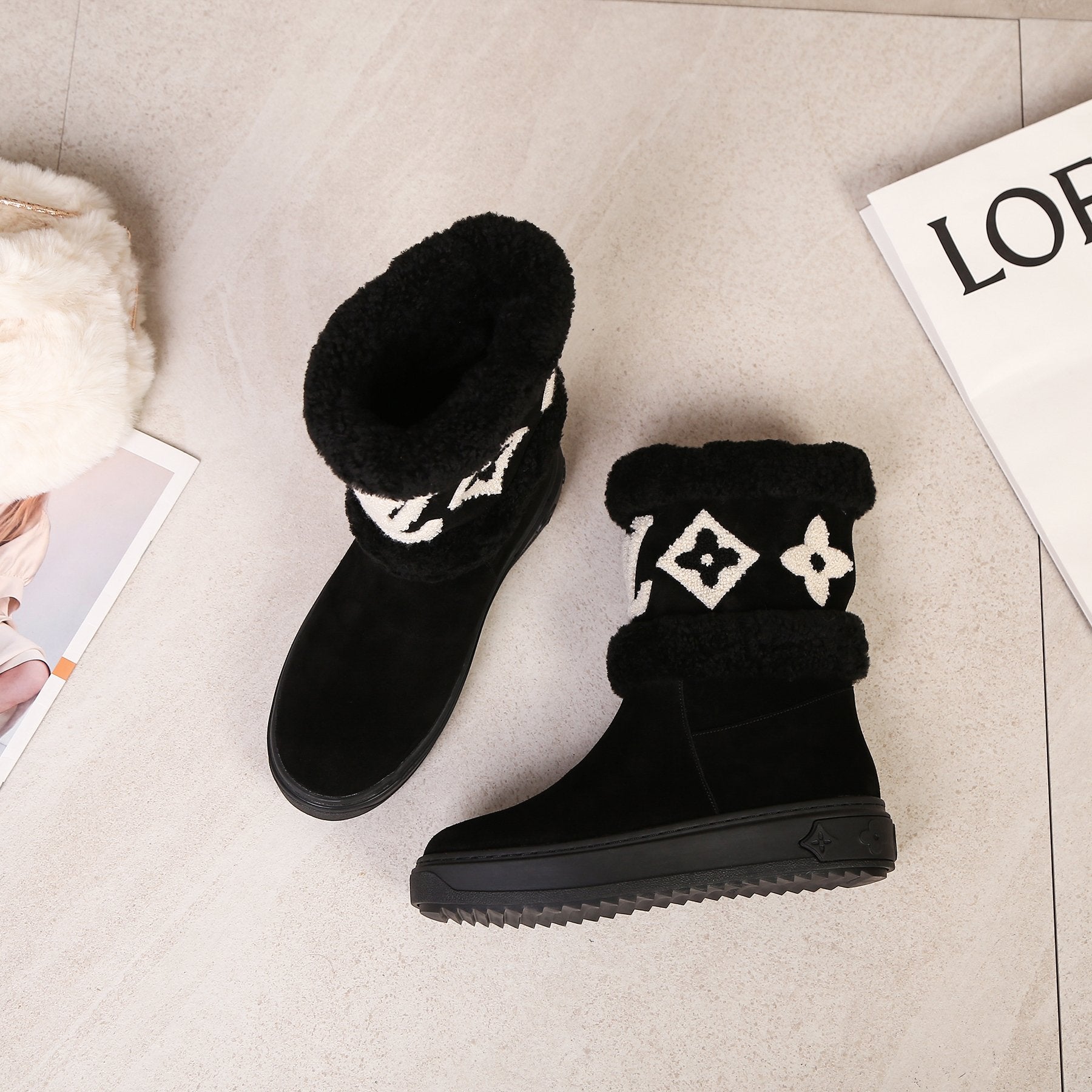 LV Snowdrop Line Ankle Boots Black Suede Wool 454720