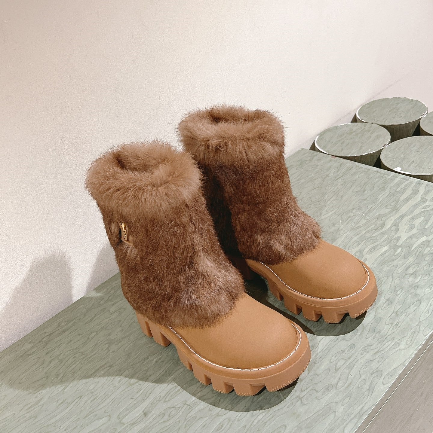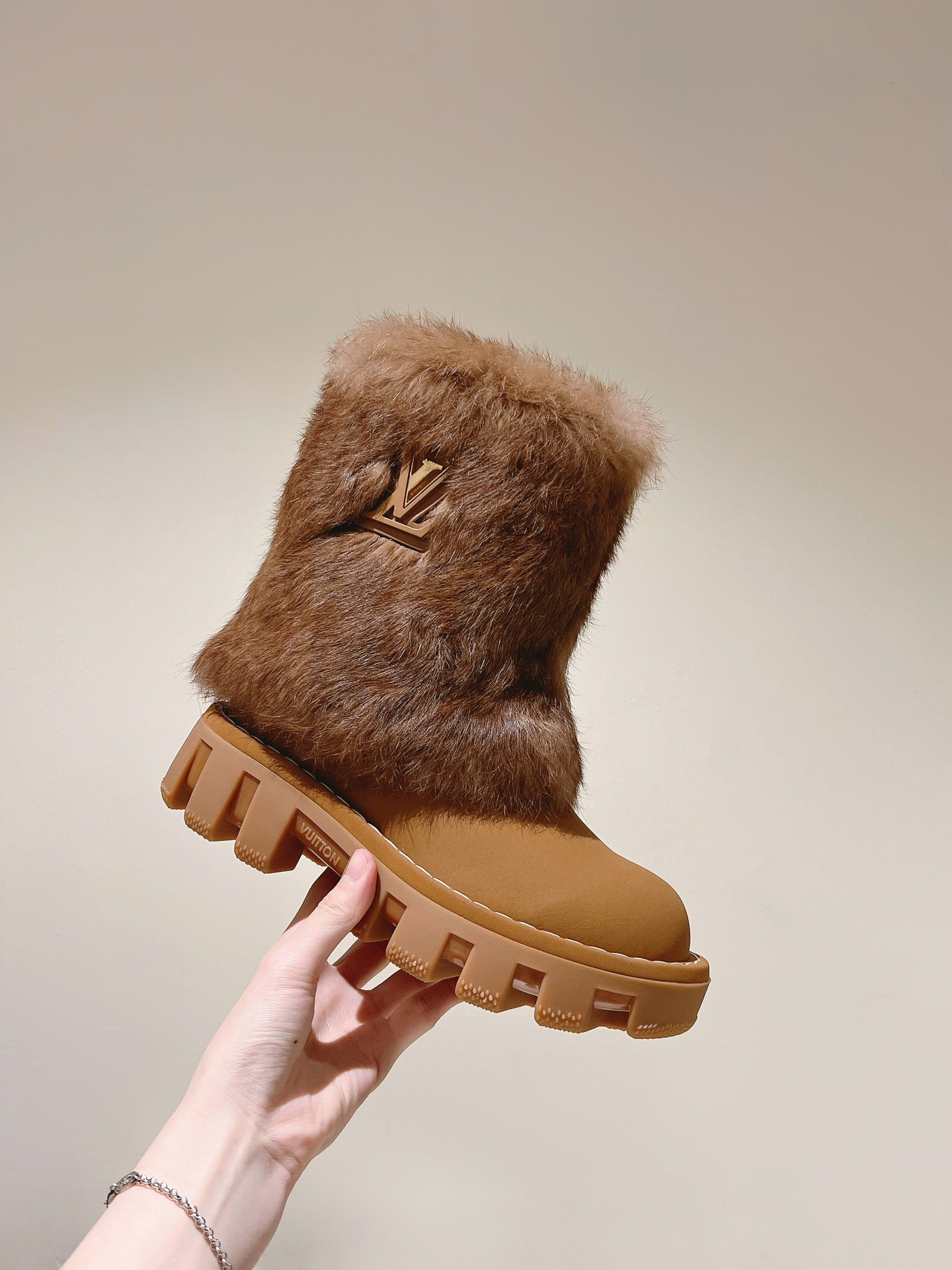 LV Ski Snowdrop Flat Ankle Boots Brown Fur Leather 449935