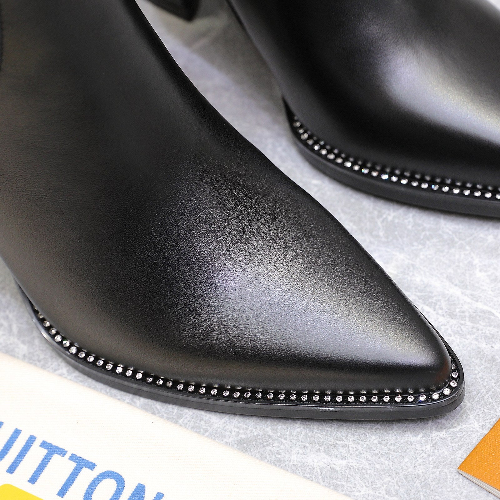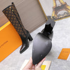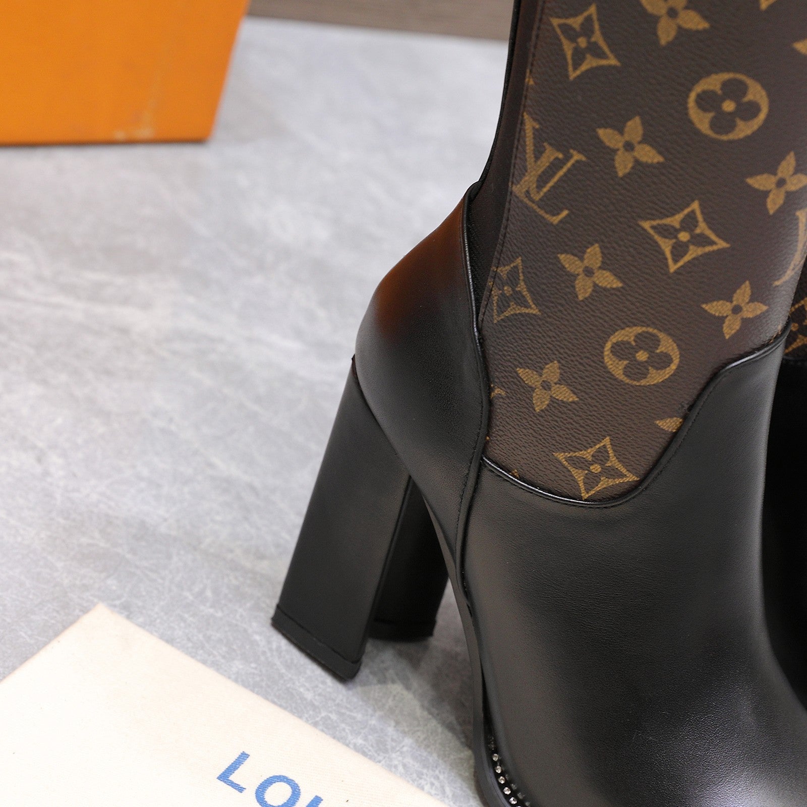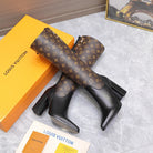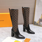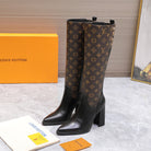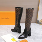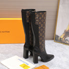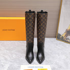 LVx Silhouette Long Boot 95mm Brown Black Calfskin & Monogram Canvas 425691
