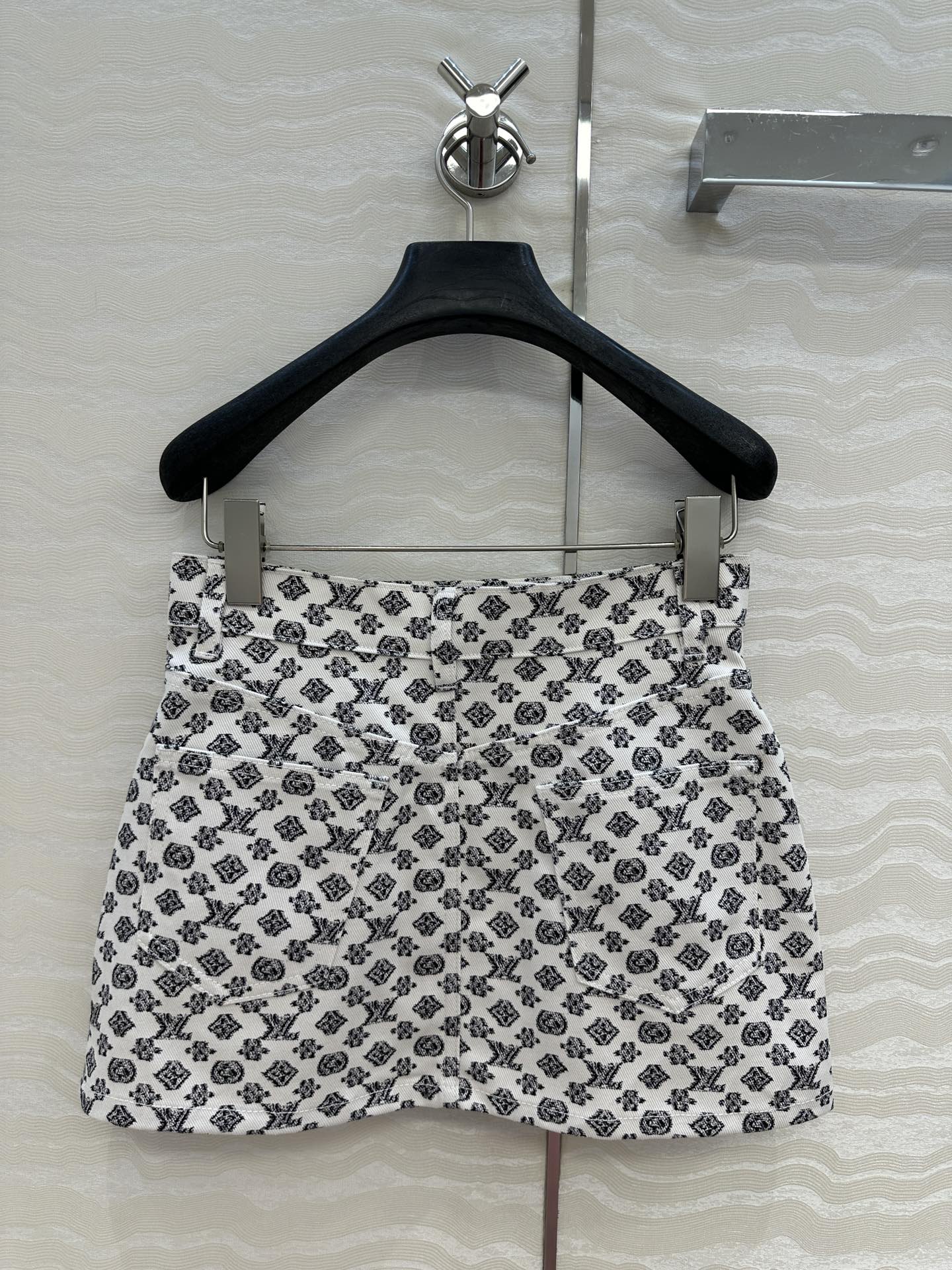 LV 25 Advanced Logo Denim Skirt Black White Poliester