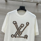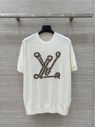 LV 25 Button Rope Jacquard Knitted T-Shirt White Wool Polyester