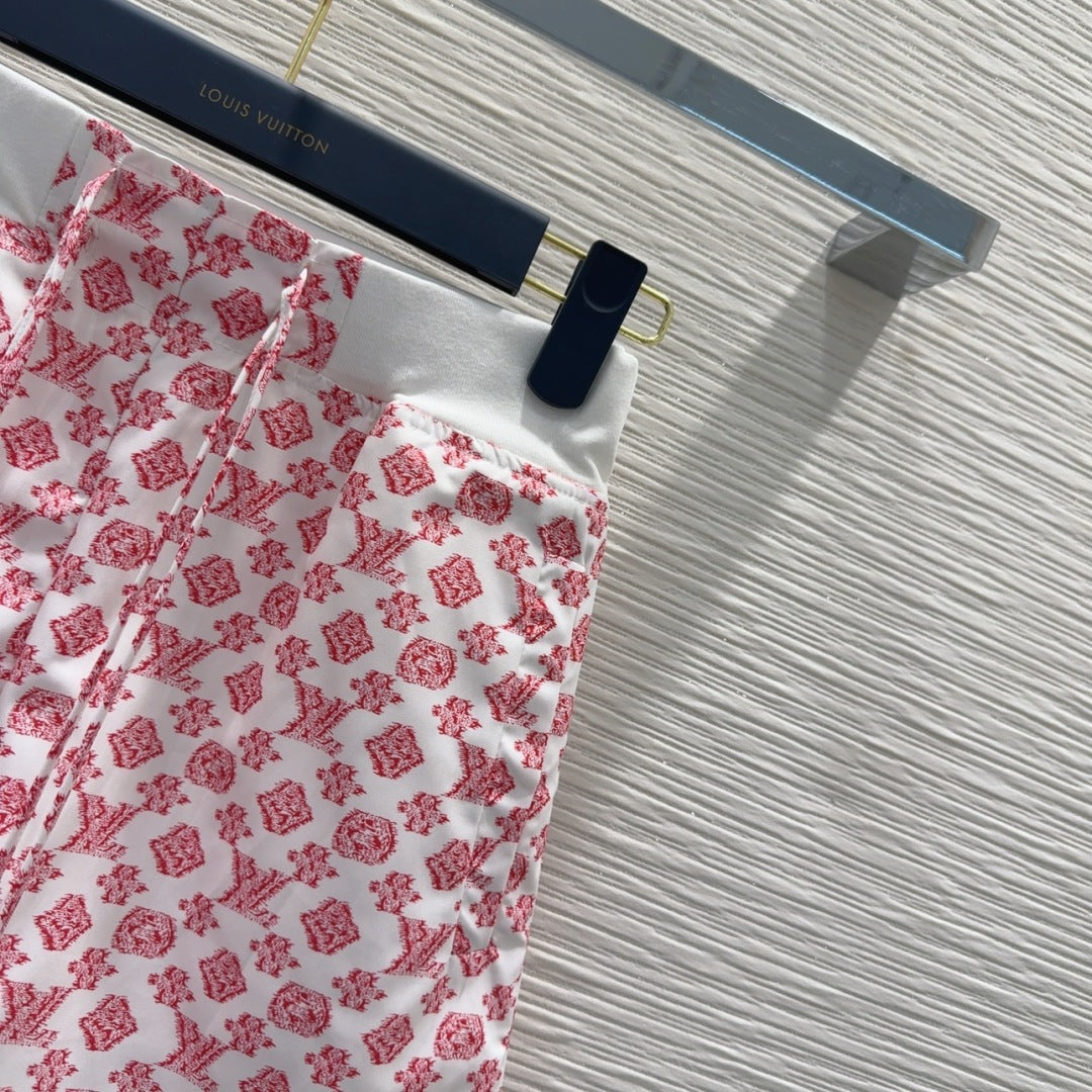 LV 25 Classic Flower Shorts Pink White Poliester