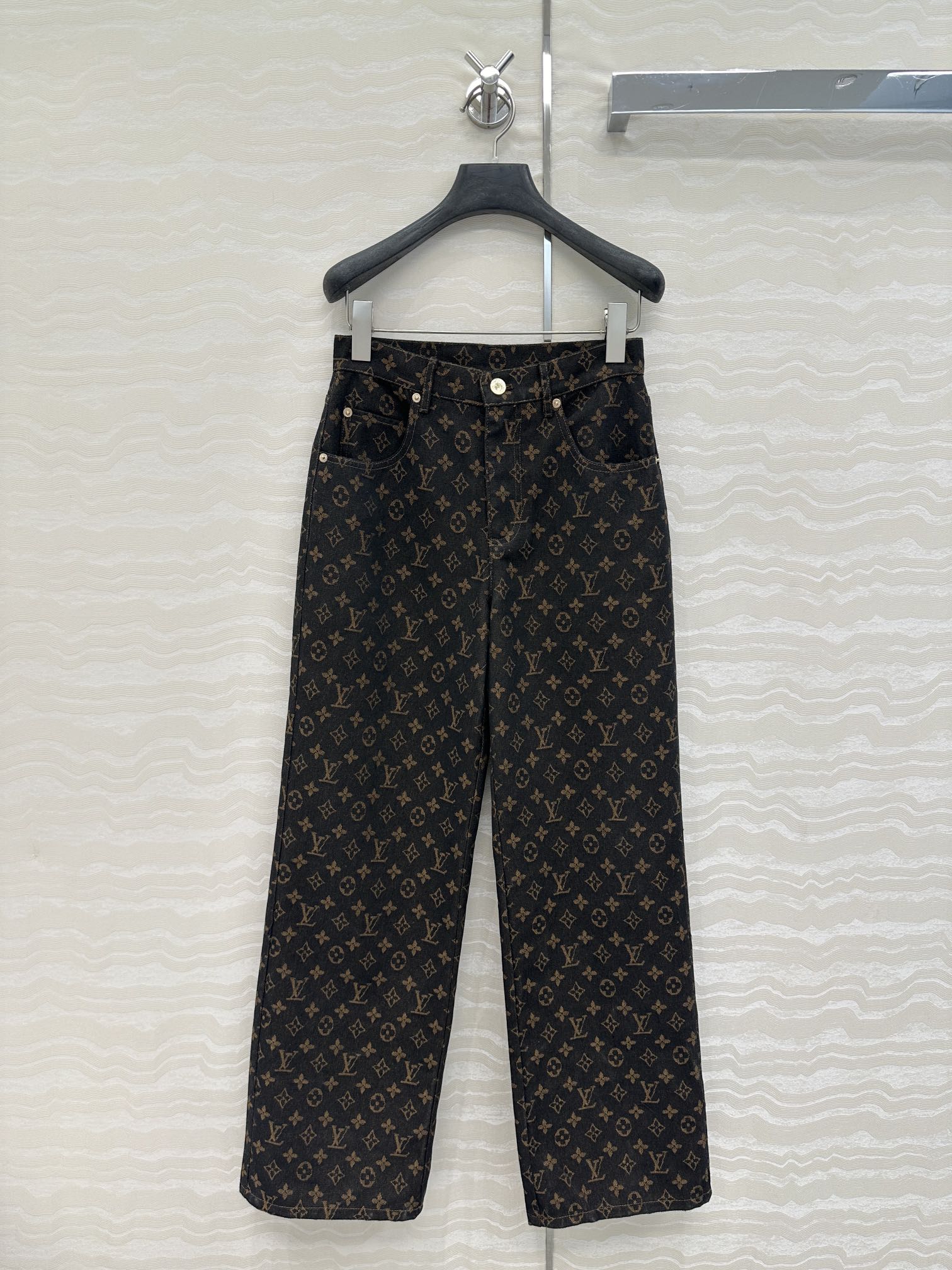 LV 25 Classic Logo Denim Trousers Black Cotton