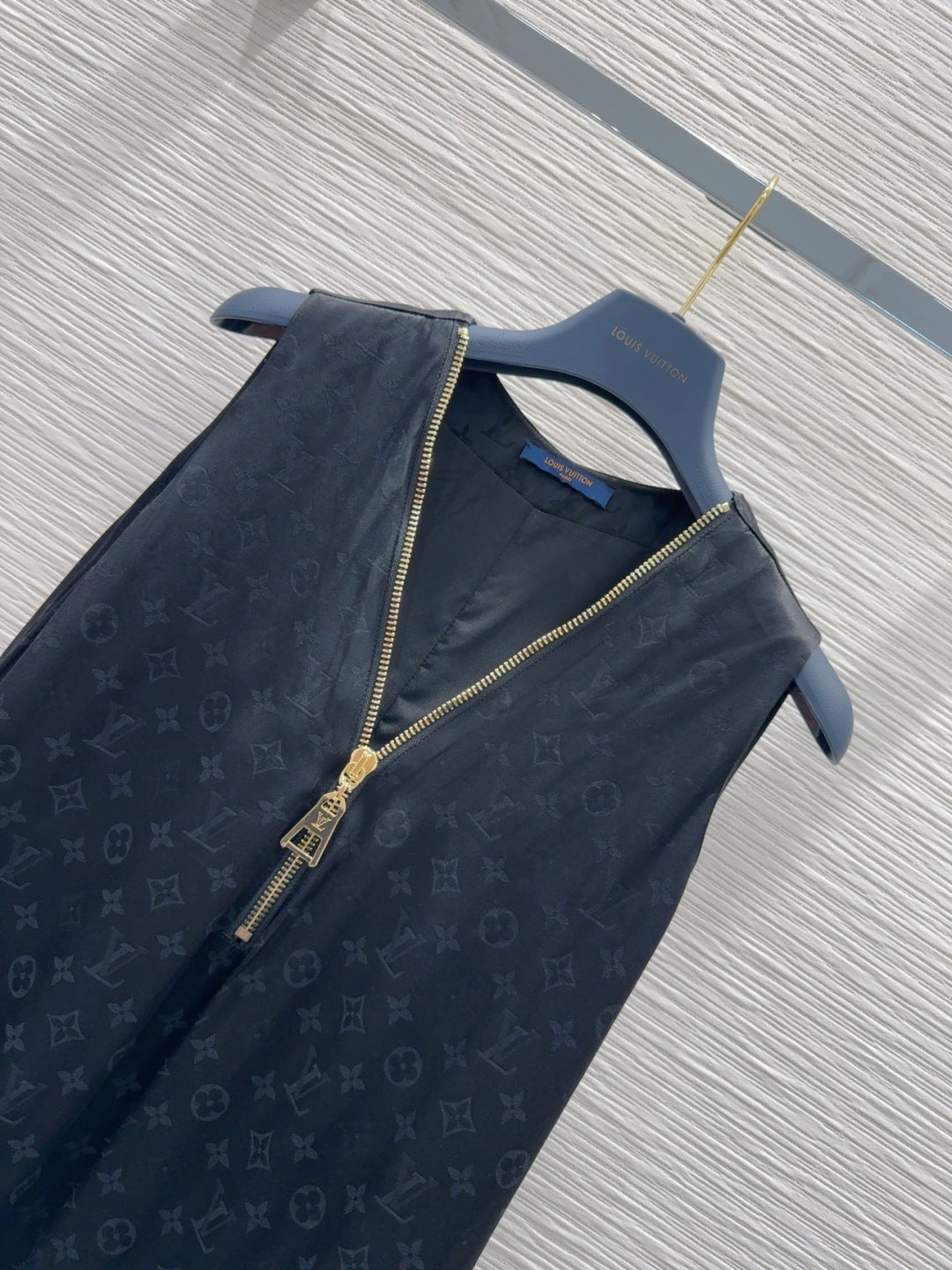 LV 25 Custom Zipper Collar Dress Black White Viscose Rayon