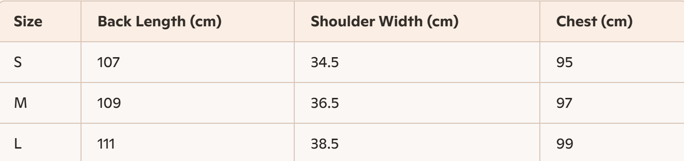 - Size: S, M, L