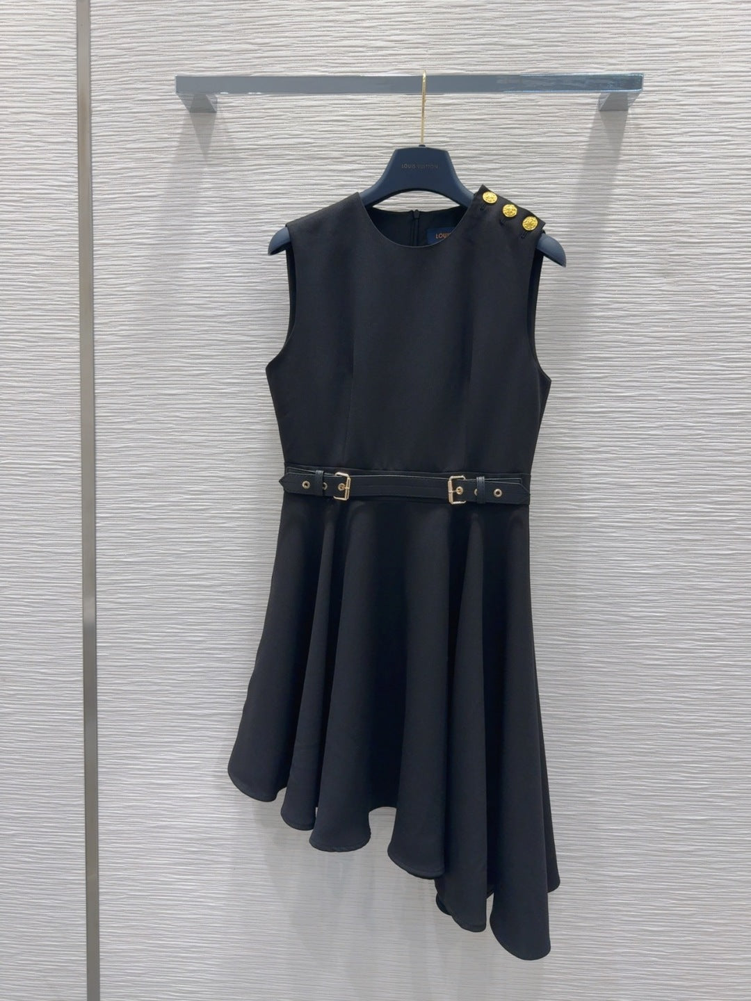 LV 25 Irregular Vest Dress Black Beige Cotton Poliester