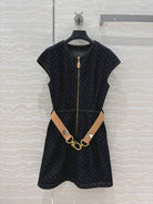 LV 25 Monogram Jacquard Logo Denim Dress Black Cotton
