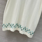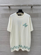 LV 25 Plaid Beading Embroidered Letters Casual T-Shirt White Beige Cotton