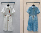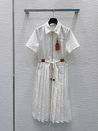 LV 25 Pleated Trendy Dress White Blue Poliester