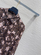 LV 25 Slightly Transparent Flower Shirt Brown Polyester
