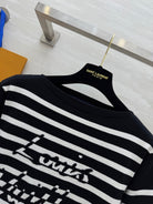 LV 25 Striped Letter Jacquard One-Shoulder Knitted Black White Cotton Polyester