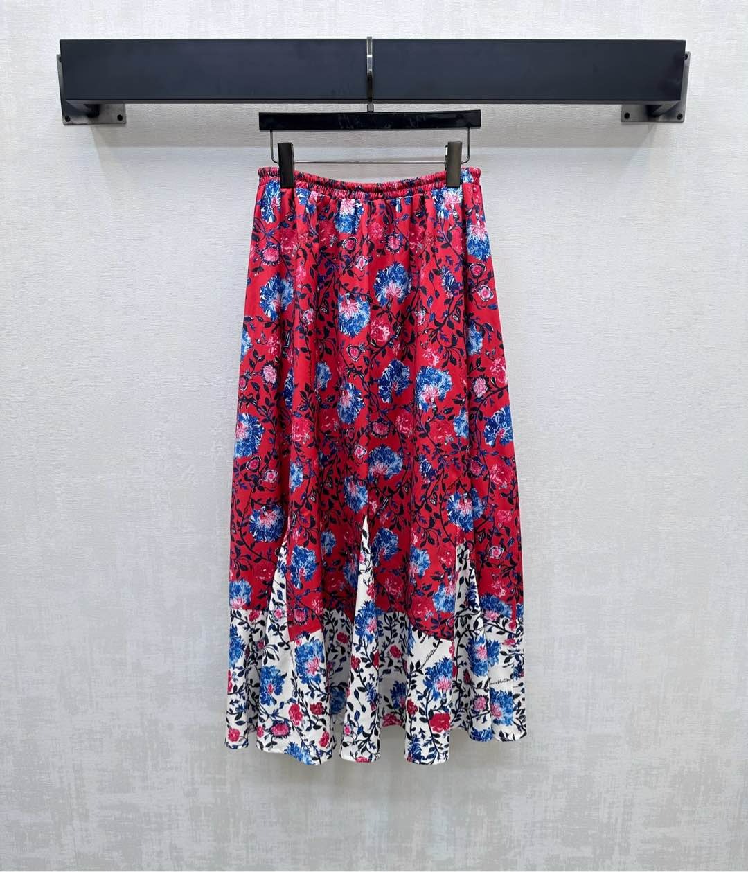 LV FLORAL SILK SKIRT IN RED