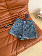 LV High waist and rolled hem design Denim Shorts Blue Cotton