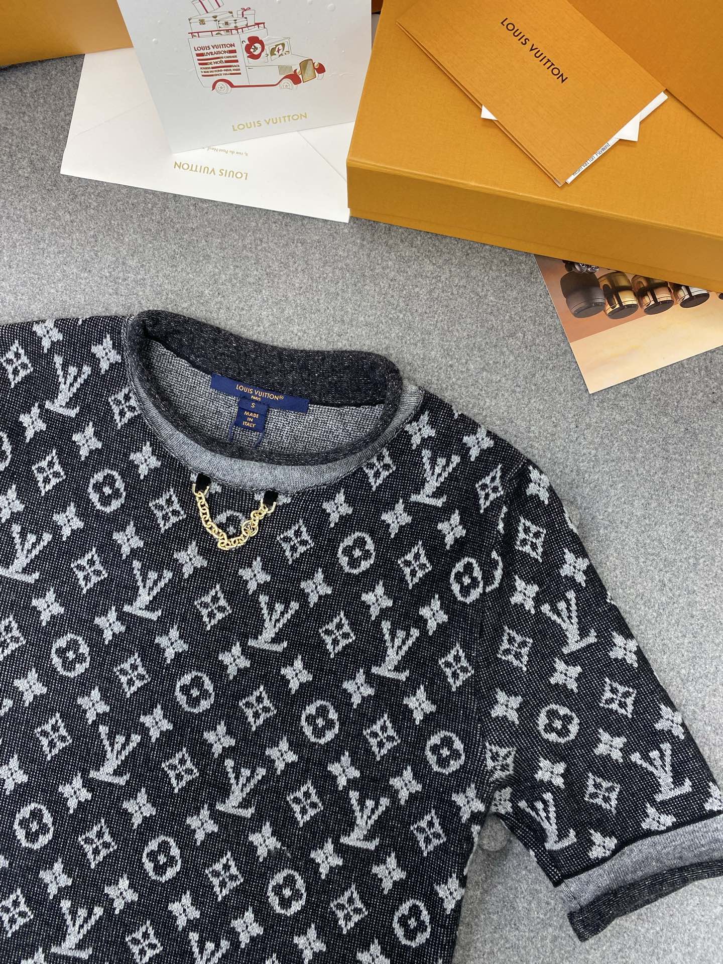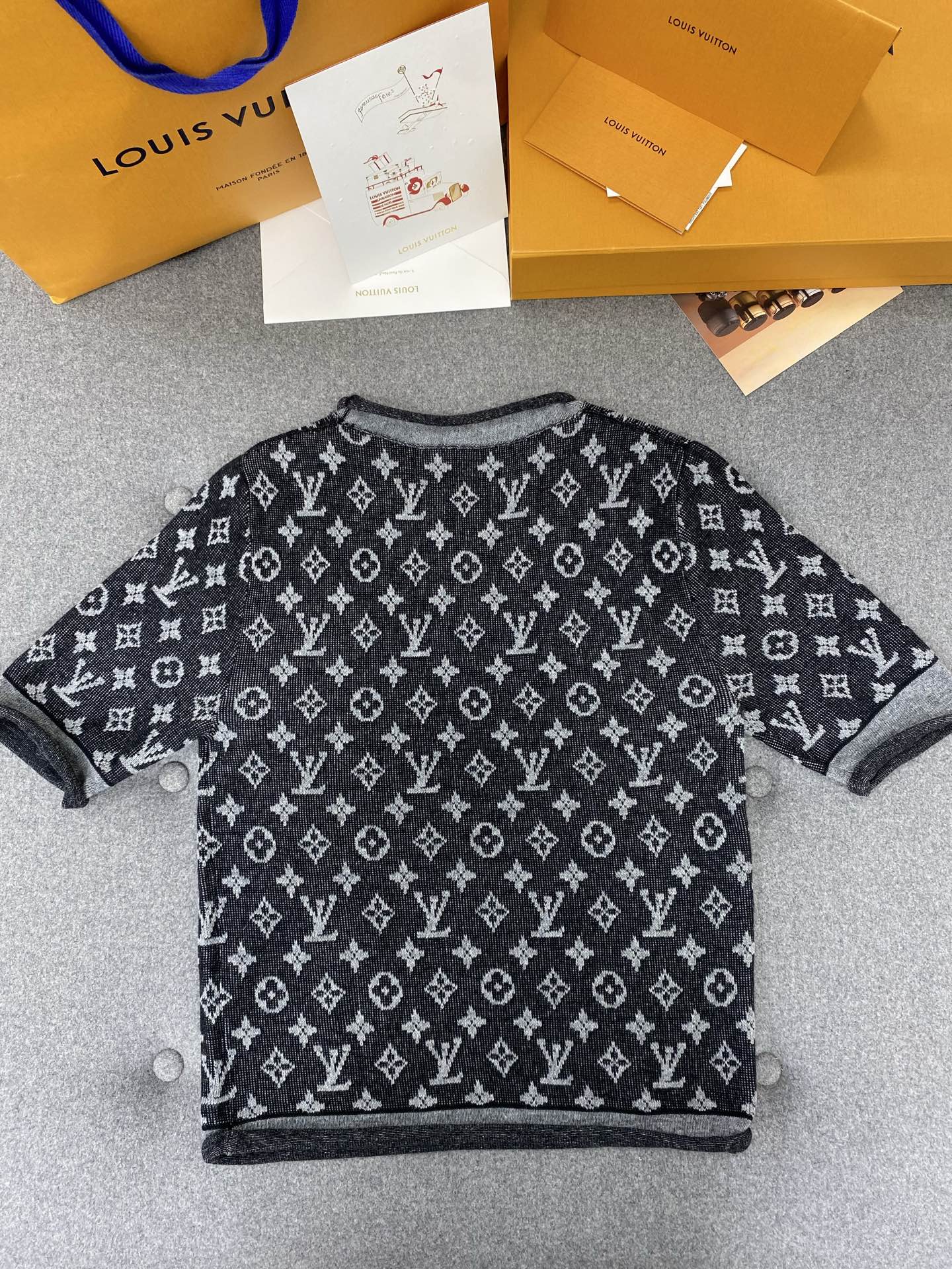 LV Simple Elegant Design T-shirt Black Cotton Wool
