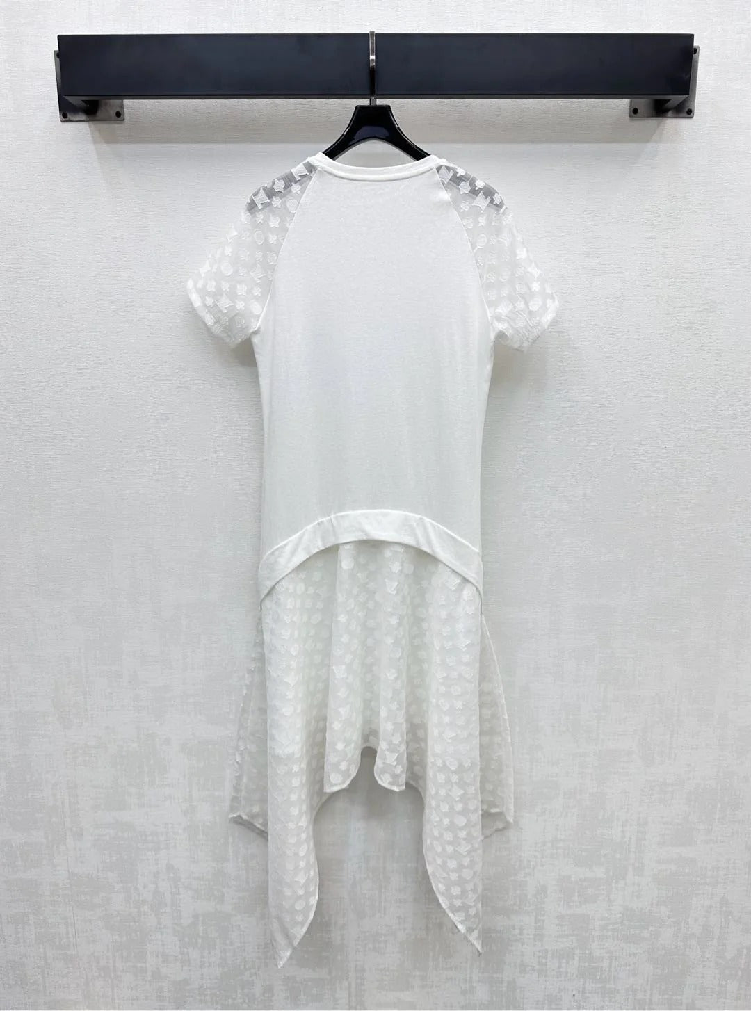 LV WHITE COTTON SHORT-SLEEVE DRESS 263735
