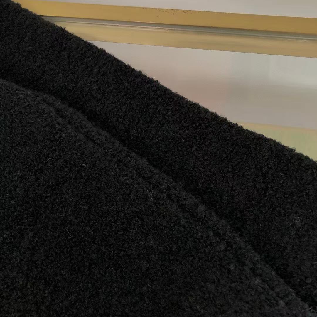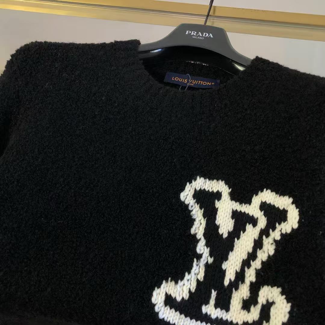 LV 25 Geometric Wave Pattern Round Neck Knitted Shirt Black Wool