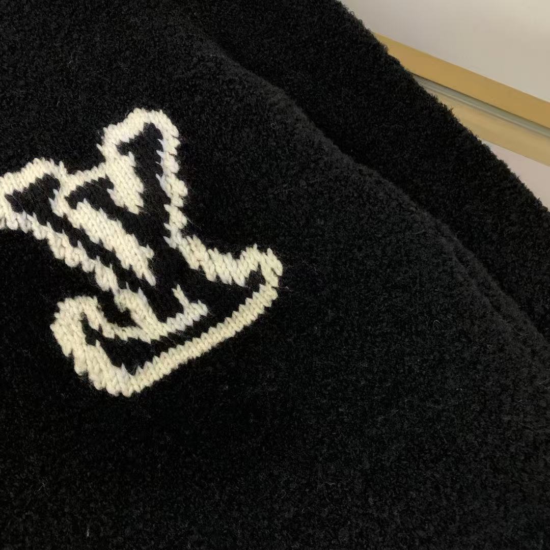 LV 25 Striped Letter Jacquard One-Shoulder Knitted Black White Cotton Polyester