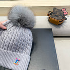 KNITTED BEANIE HAT IN GRAY WOOL 426216