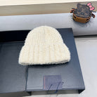 KNITTED BEANIE HAT IN LIGHT BEIGE WOOL 421267