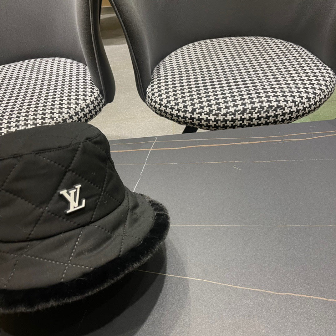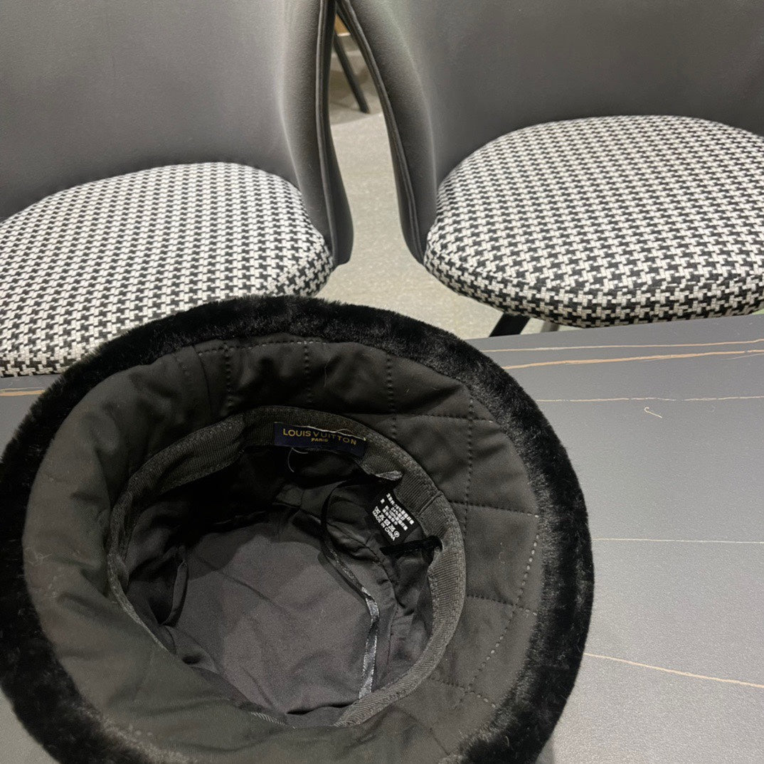 KNITTED BUCKET HAT IN BLACK COTTON AND LAMB FUR 420923