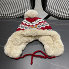 PLUSH EARMUFFS HAT IN COLORFUL WOOL AND RABBIT FUR 408169