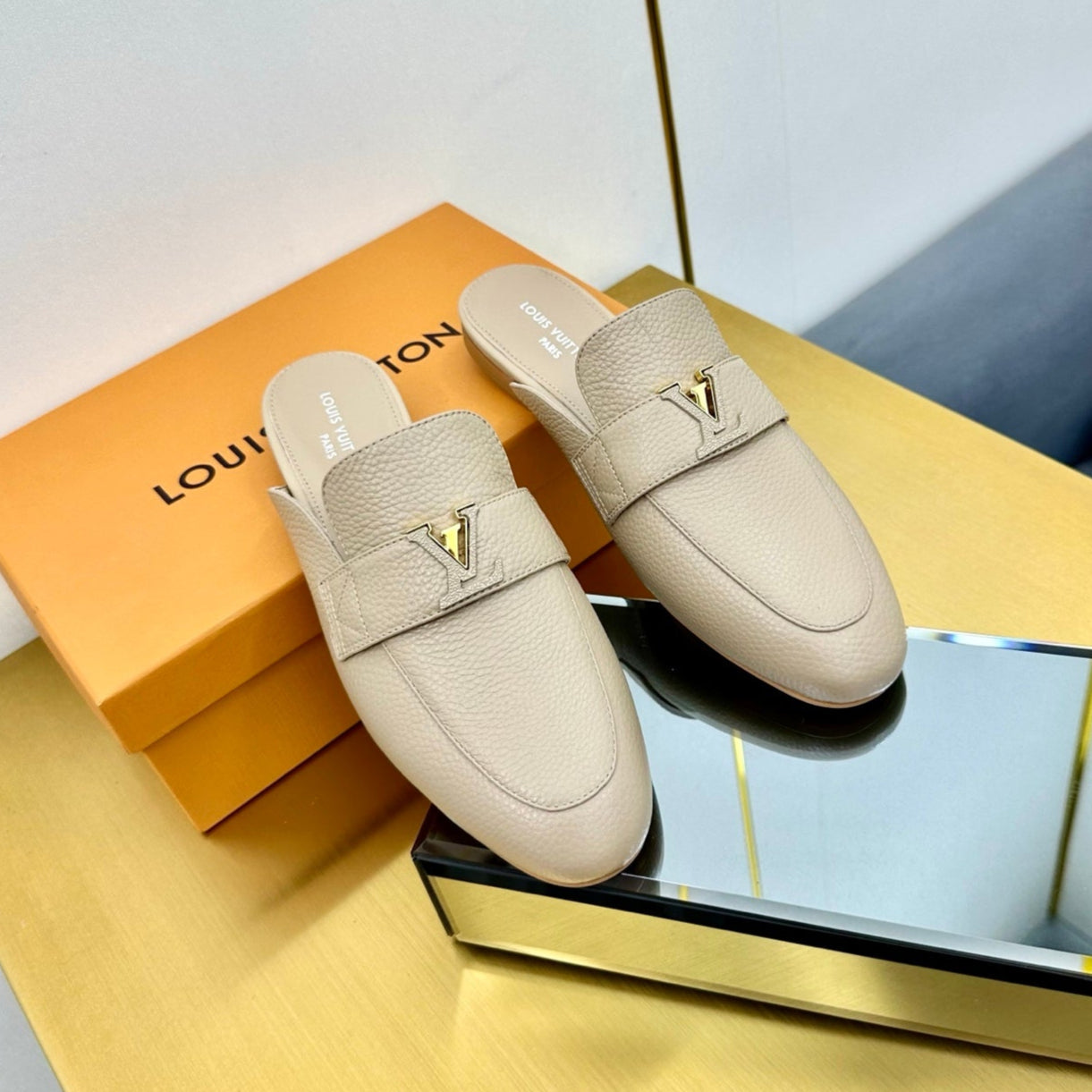 LV 25C LV Capri Open Back Loafer Cream Wrinkled Cowhide 219927