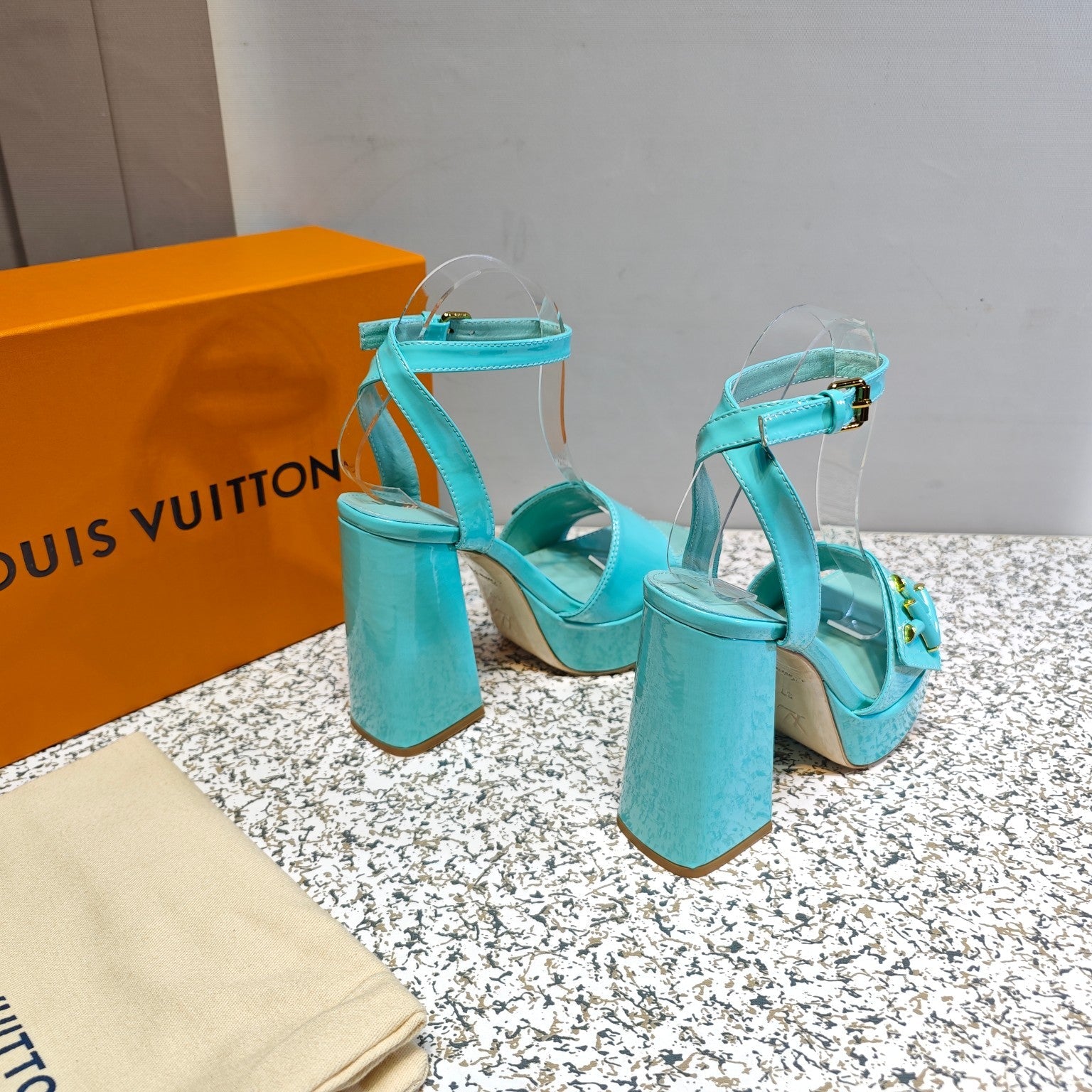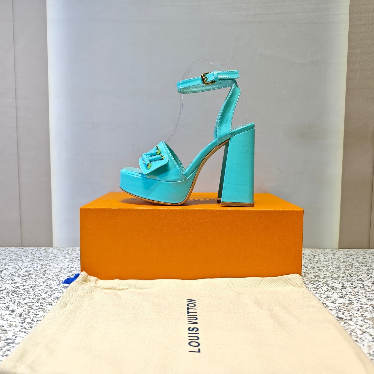 LV Shake Platform Sandal 110mm Turquoise Patent Leather 456138