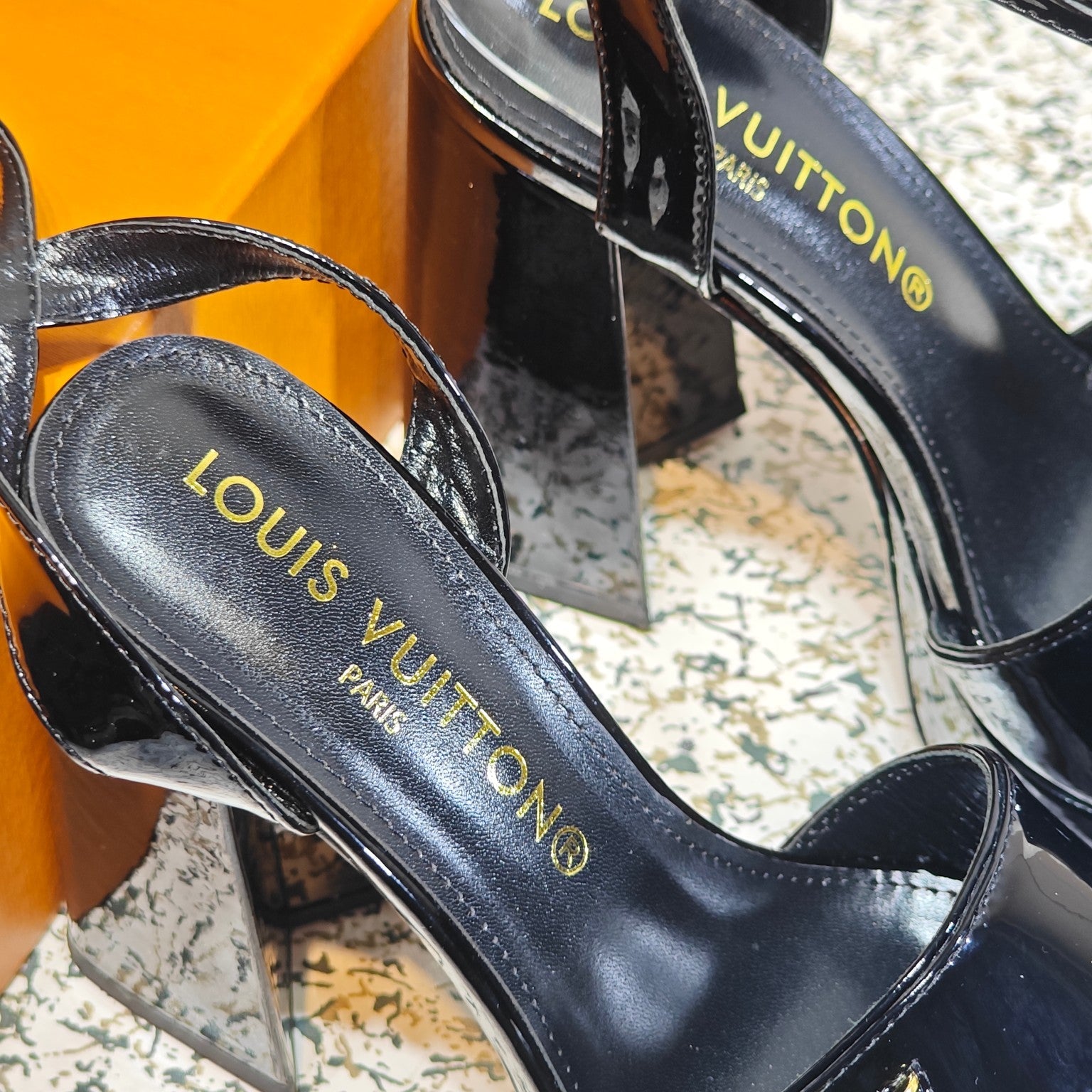 LV Shake Platform Sandal 110mm Orange Patent Leather 456137