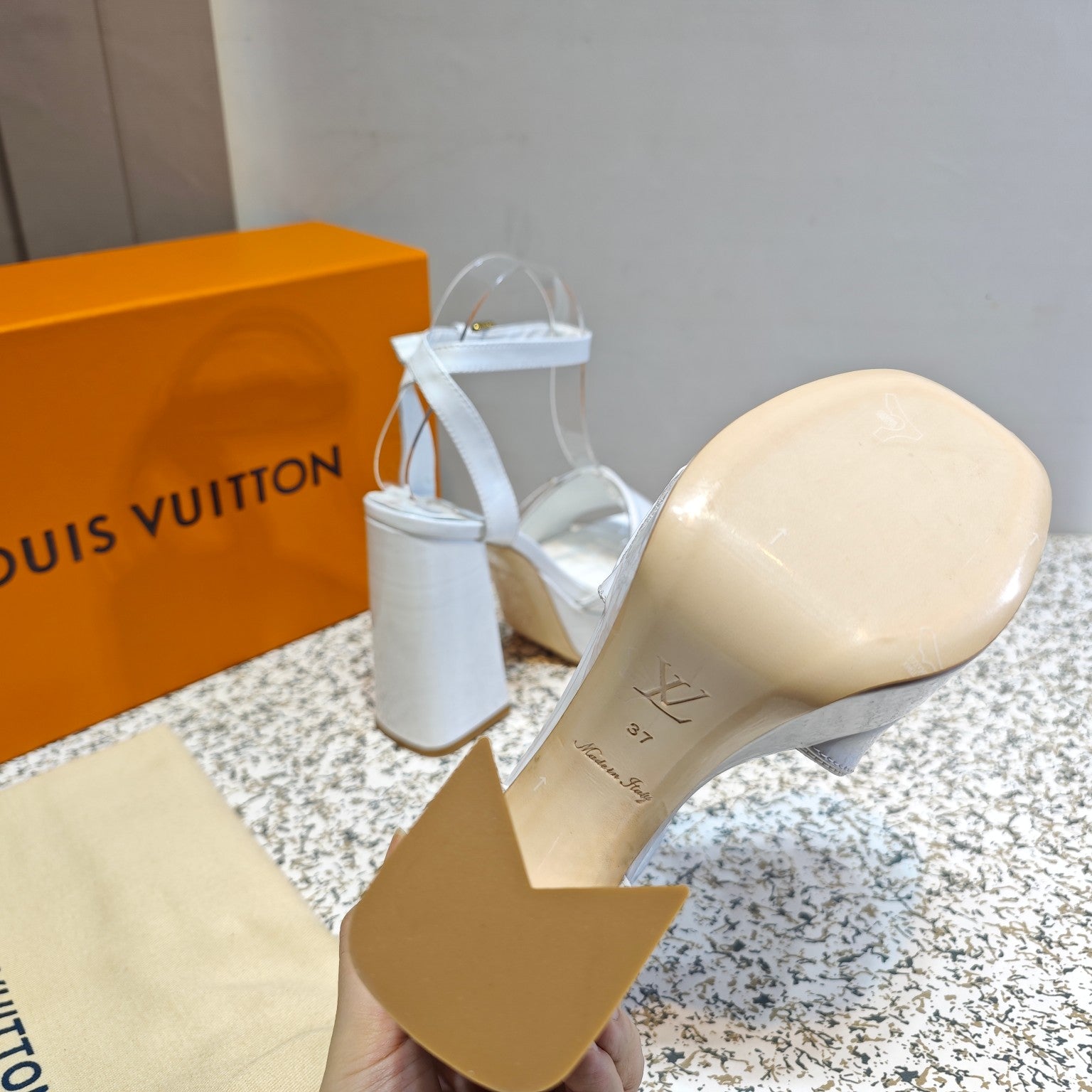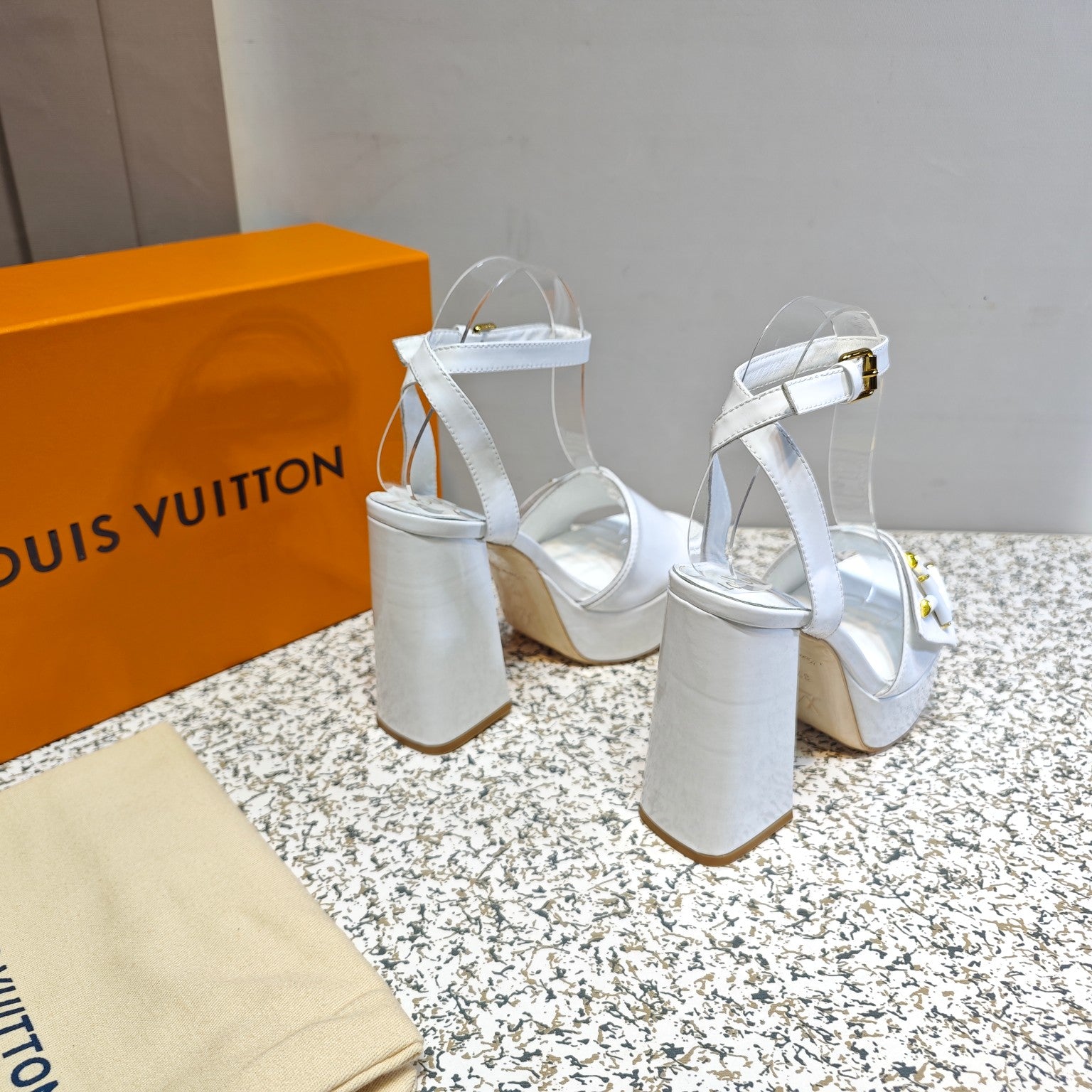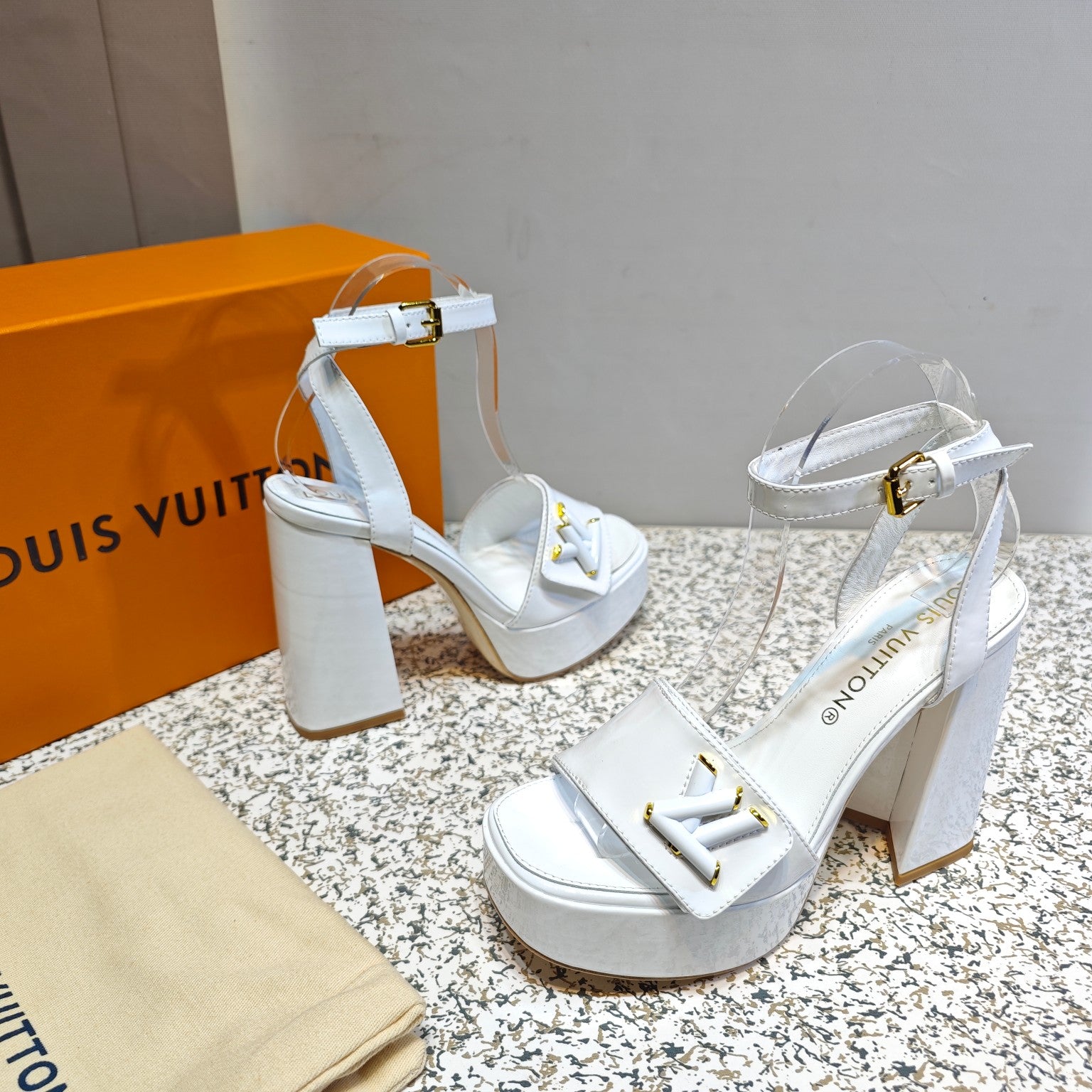 LV Shake Platform Sandal 110mm White Patent calf leather 456143