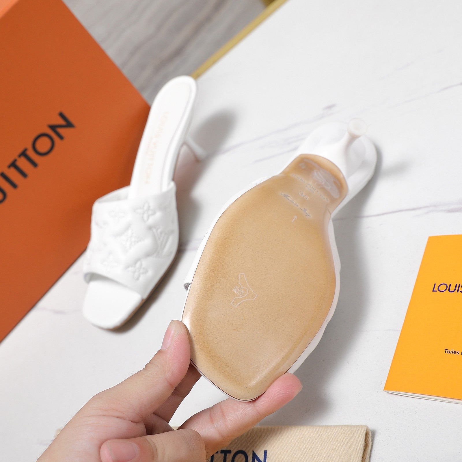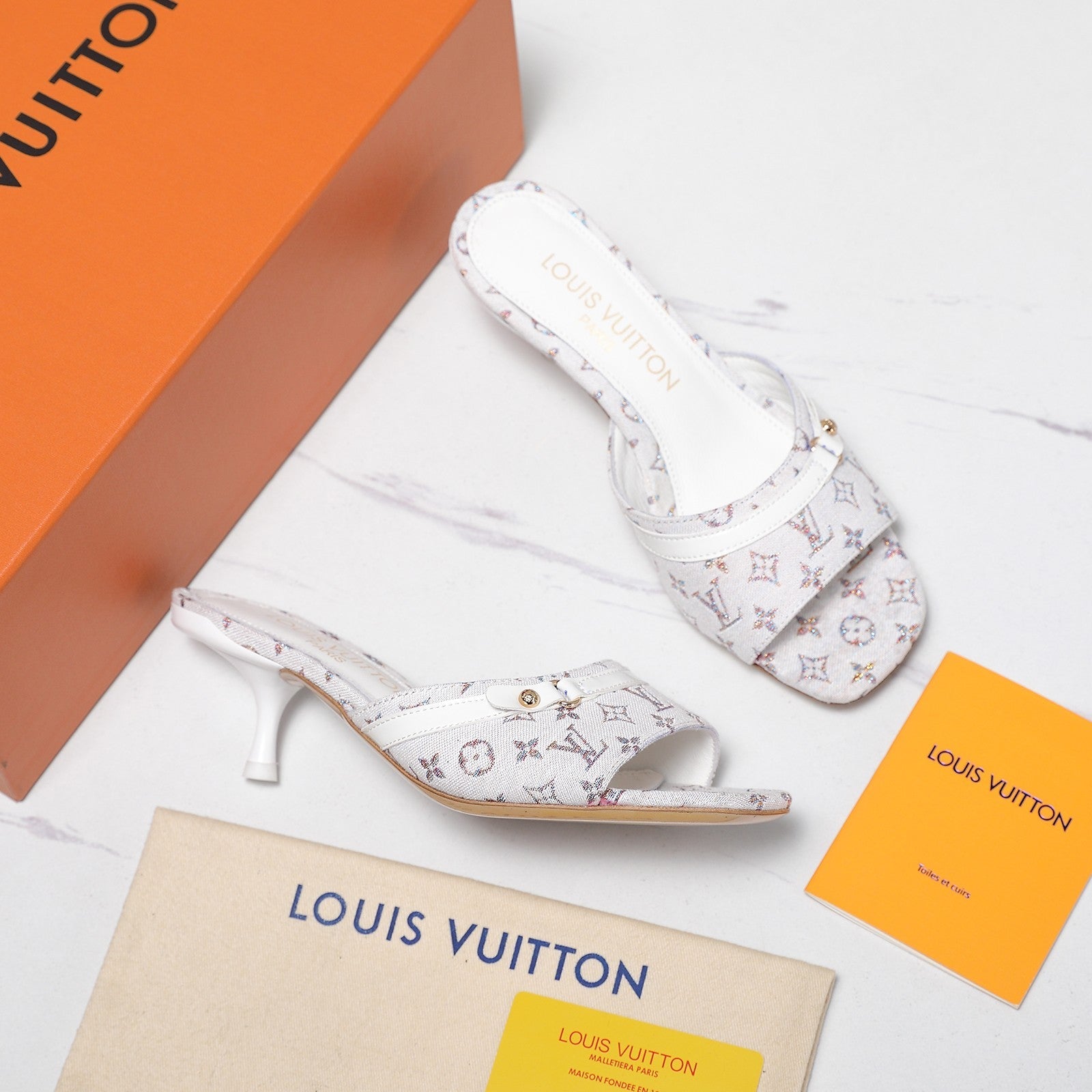LV Revival Mule 90mm White Monogram-Embossed Lambskin 456146