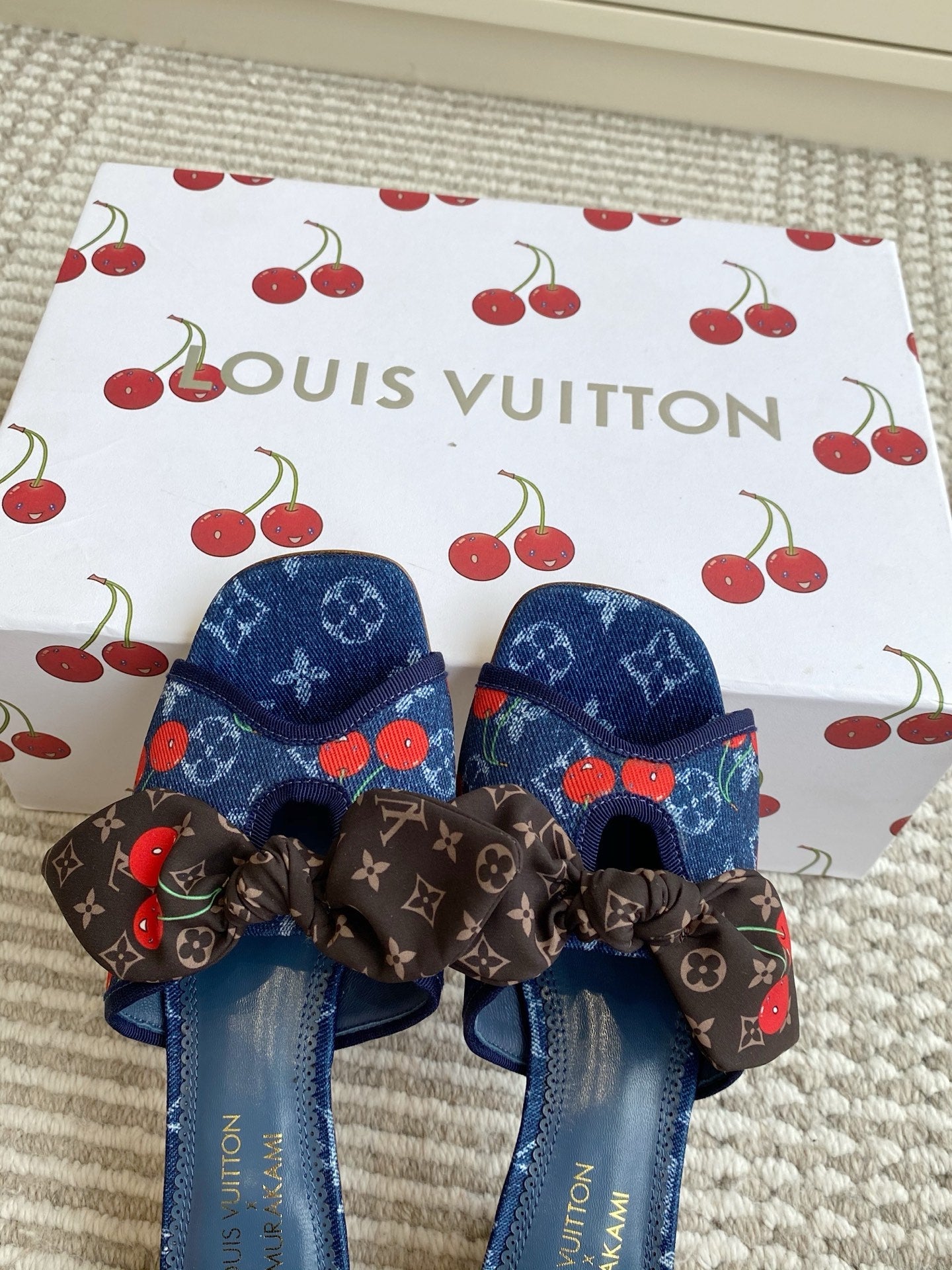 Cherry Series LV X TM CHERIE Sandals Beige Blue Denim 442130