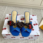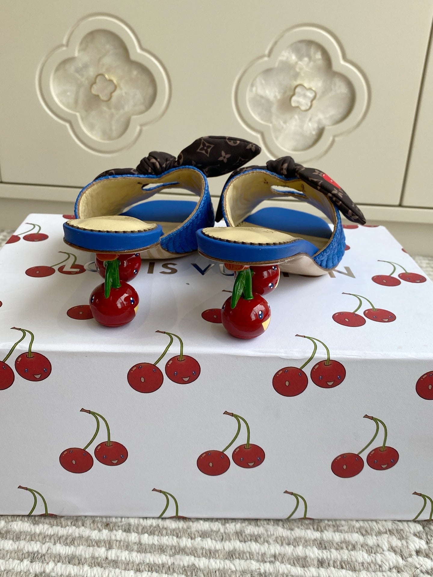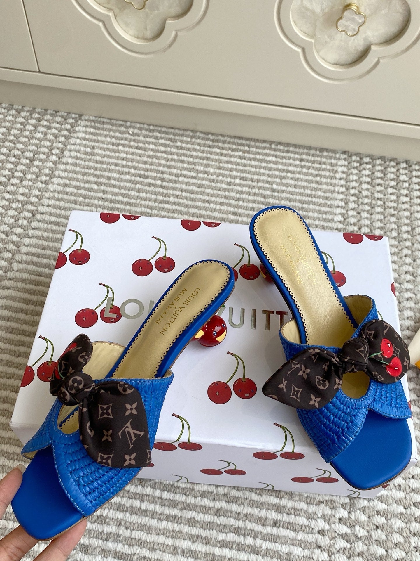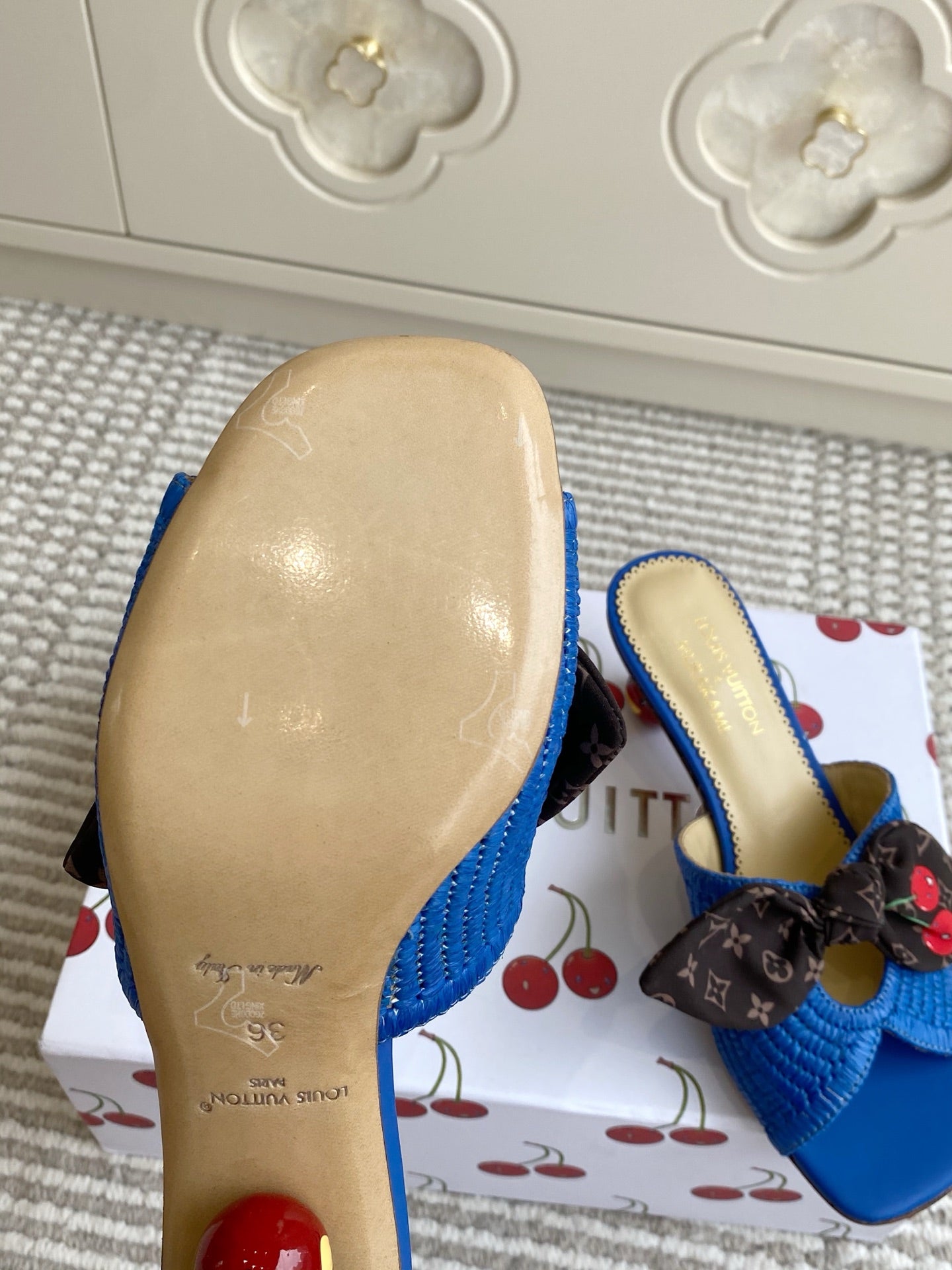 Cherry Series LV X TM CHERIE Sandals Beige Blue Woven Raffia 442133