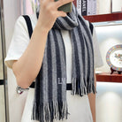 KNITTED SCARF 180 CM IN BLACK MIX GRAY CASHMERE 388179
