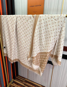MONOGRAM 140 CM SQUARE SCARF IN PEANUT BROWN MIX WHITE CASHMERE 391108