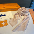 MONOGRAM SHINE SCARF 120 CM IN METALLIC BEIGE WOOL AND MULBERRY SILK 398197