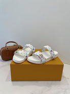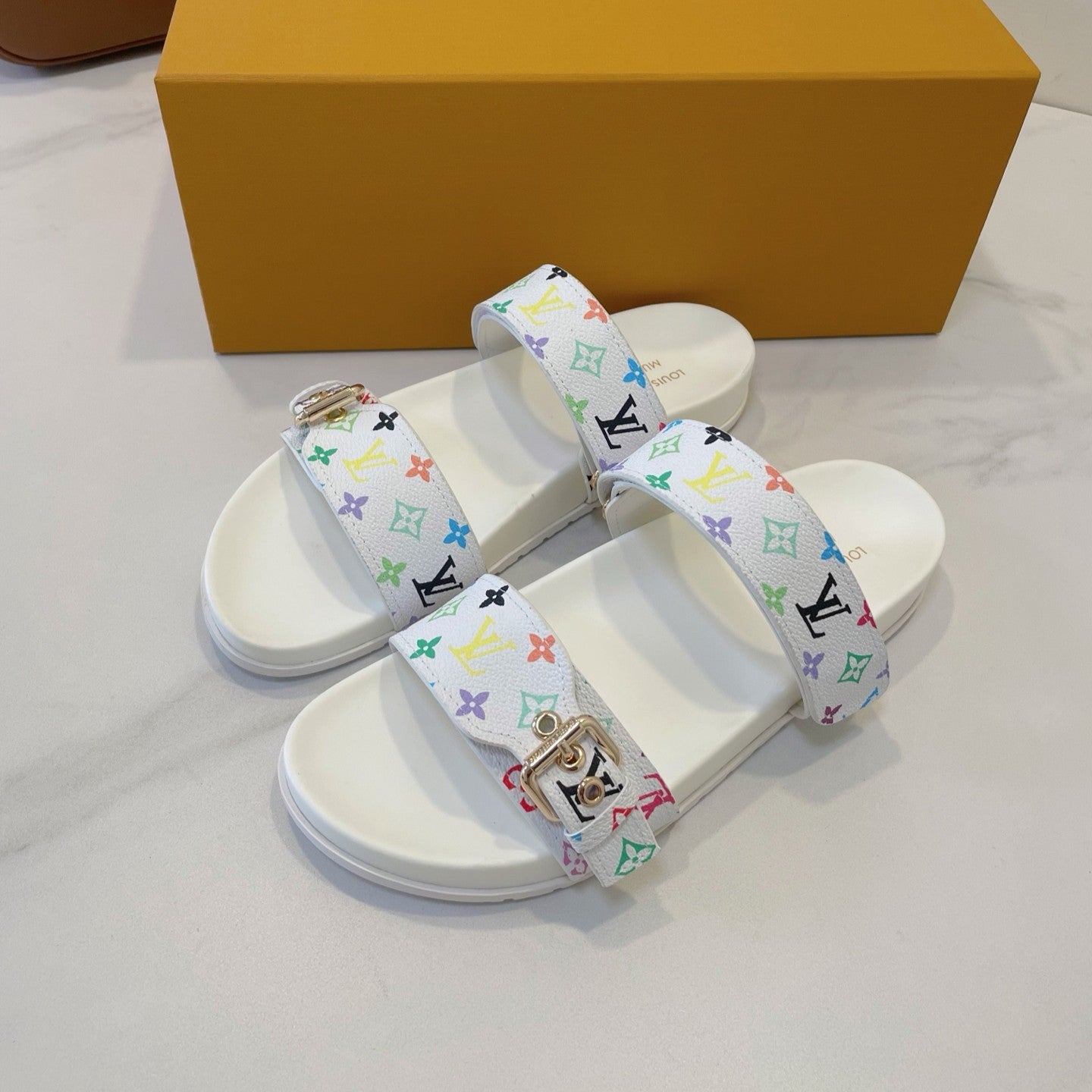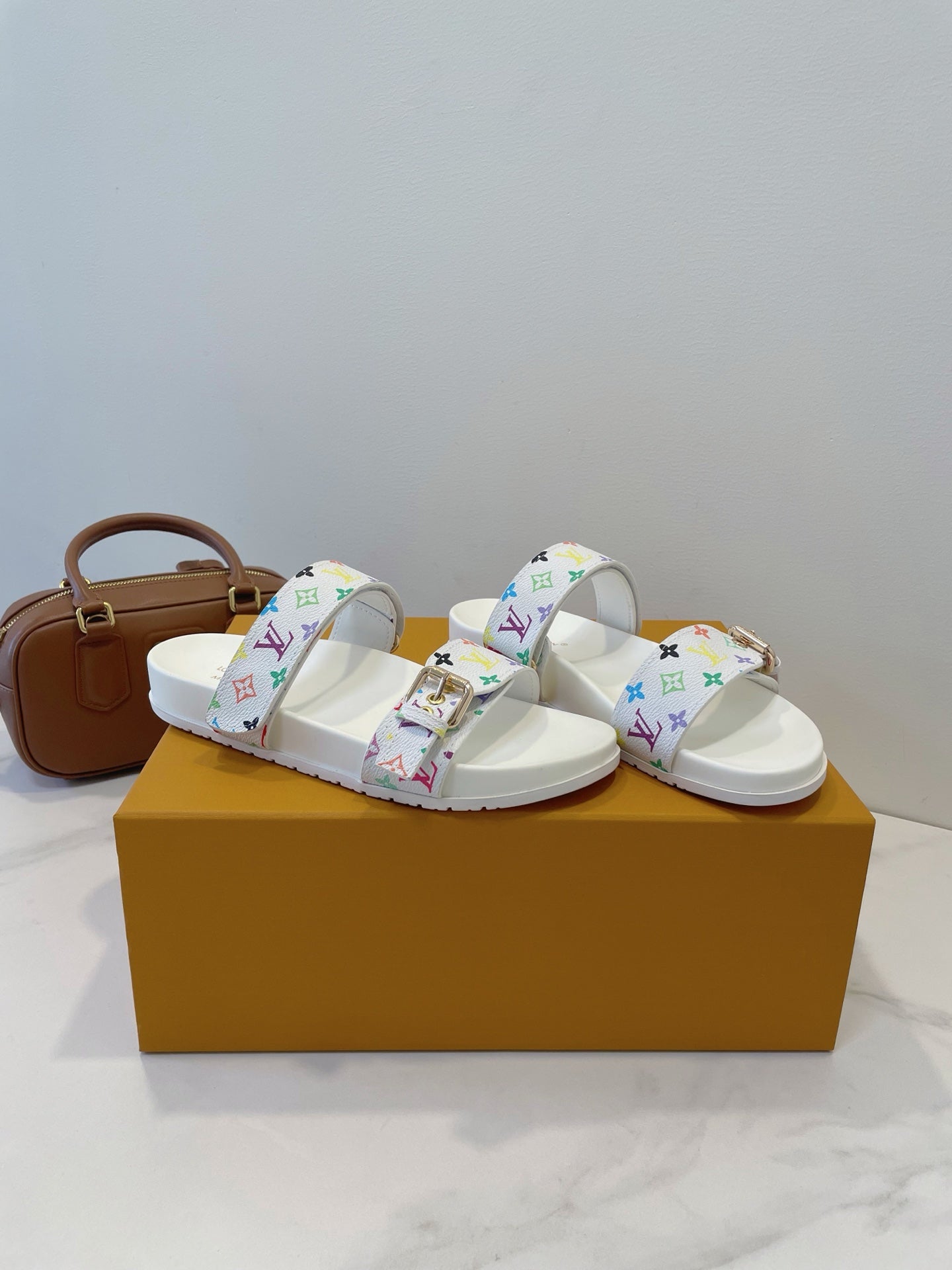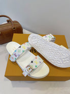 Bom Dia Flat Comfort Mule White and Multicolored Monogram Canvas 241334