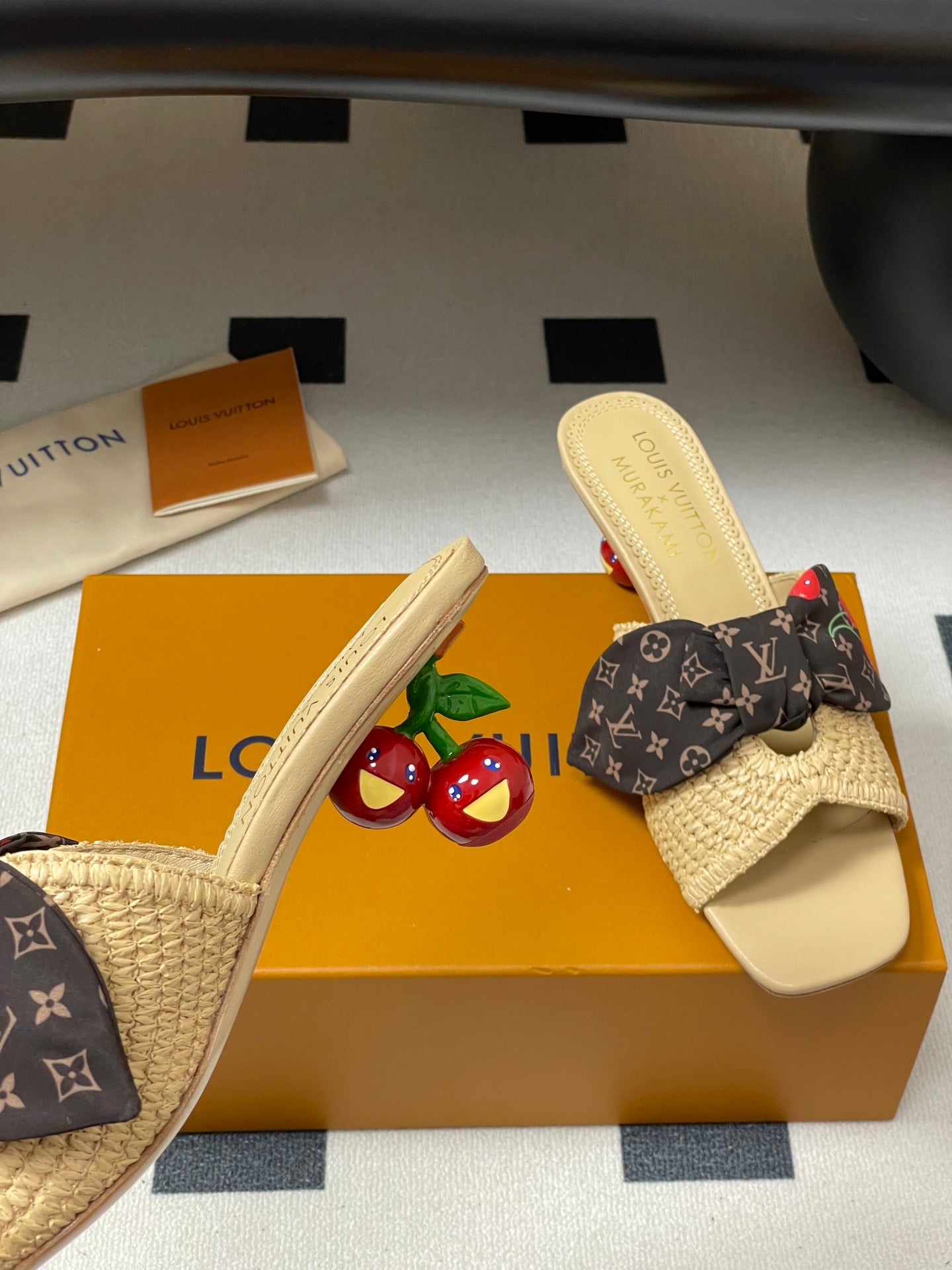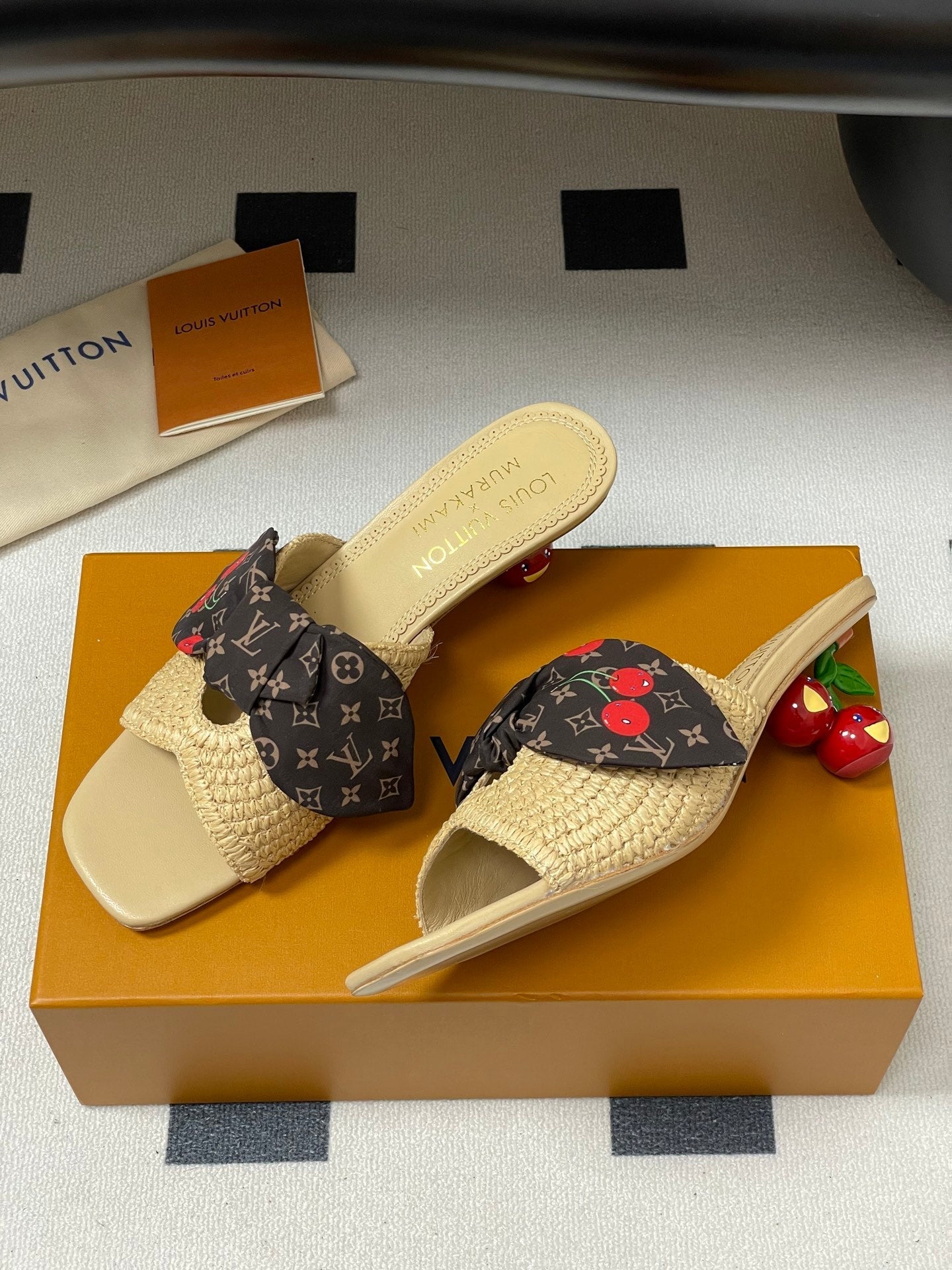 Cherry Series LV X TM CHERIE Sandals Beige Brown Woven Raffia