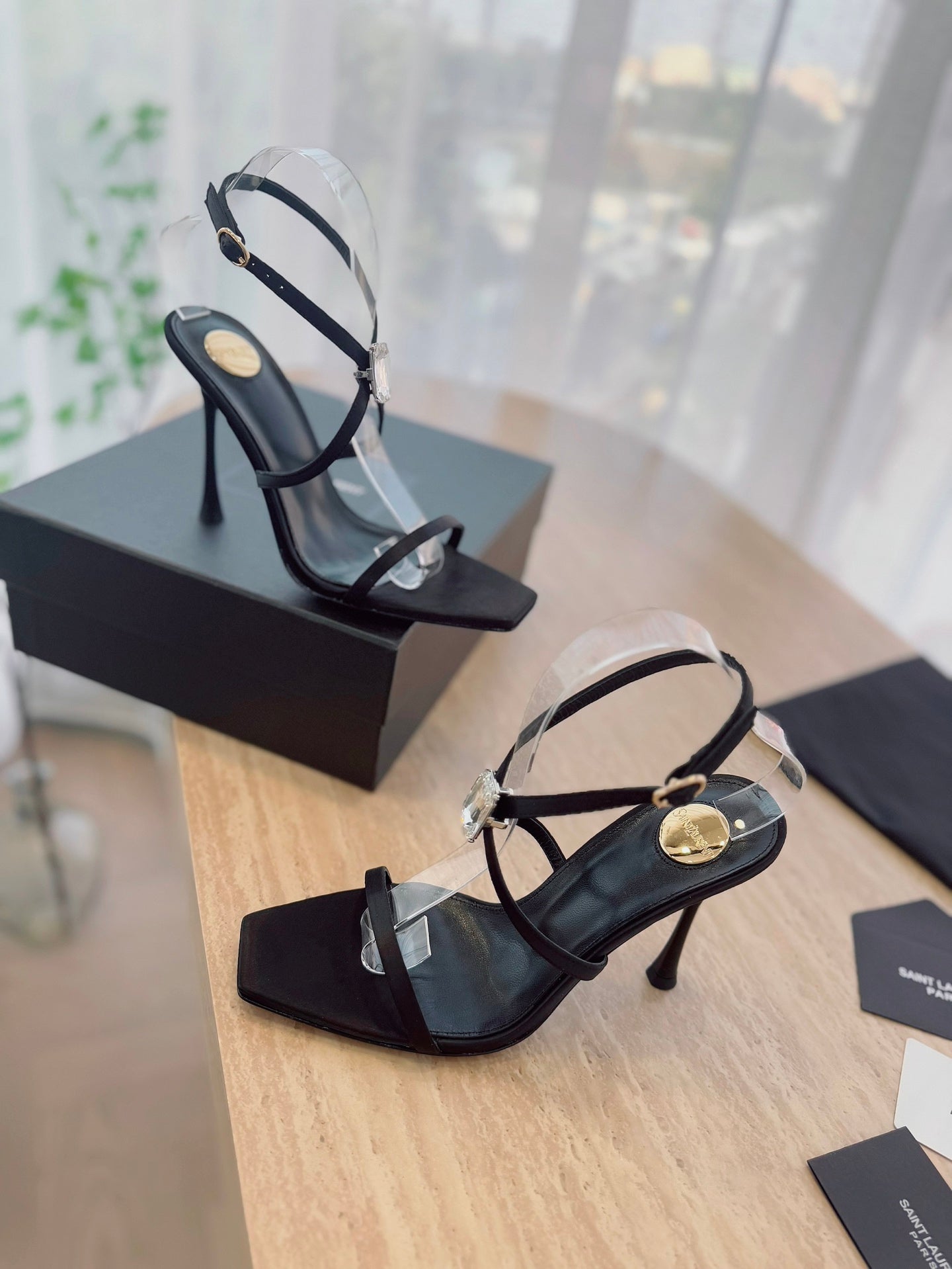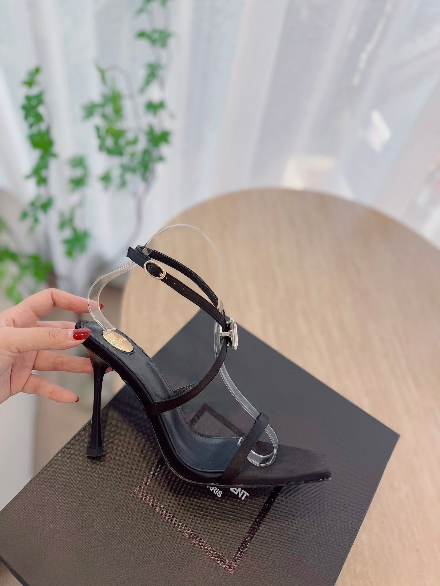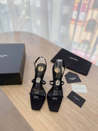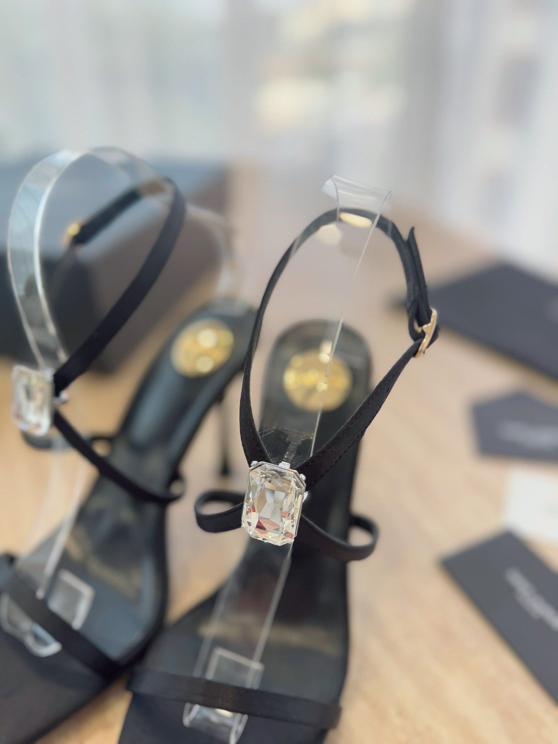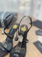 HIGH HEEL SANDAL 10 CM IN BLACK SATIN CREPE AND CRYSTAL