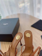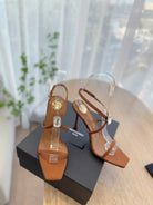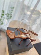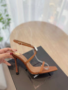 HIGH HEEL SANDAL 10 CM IN BRONZE BROWN SATIN CREPE AND CRYSTAL