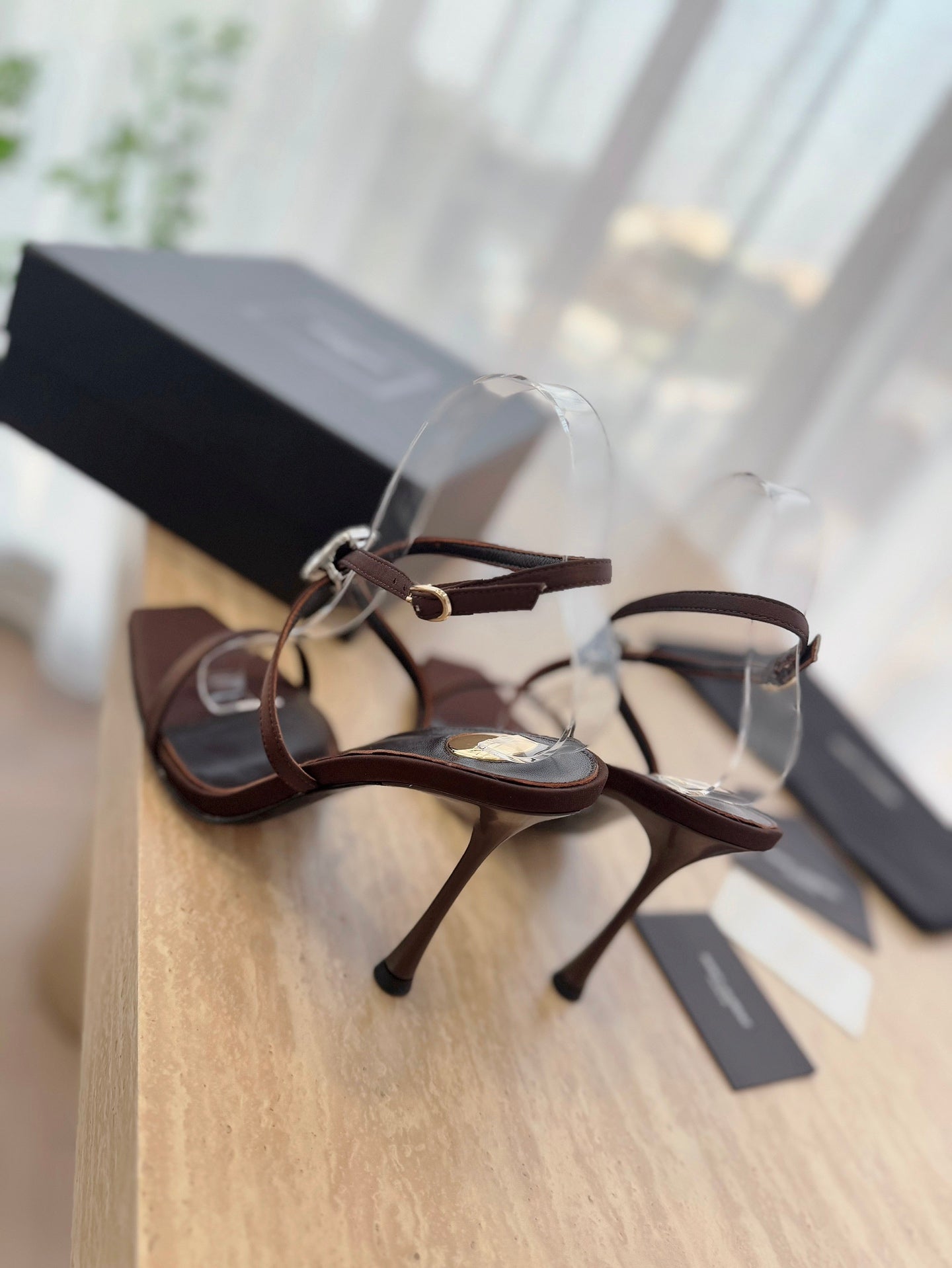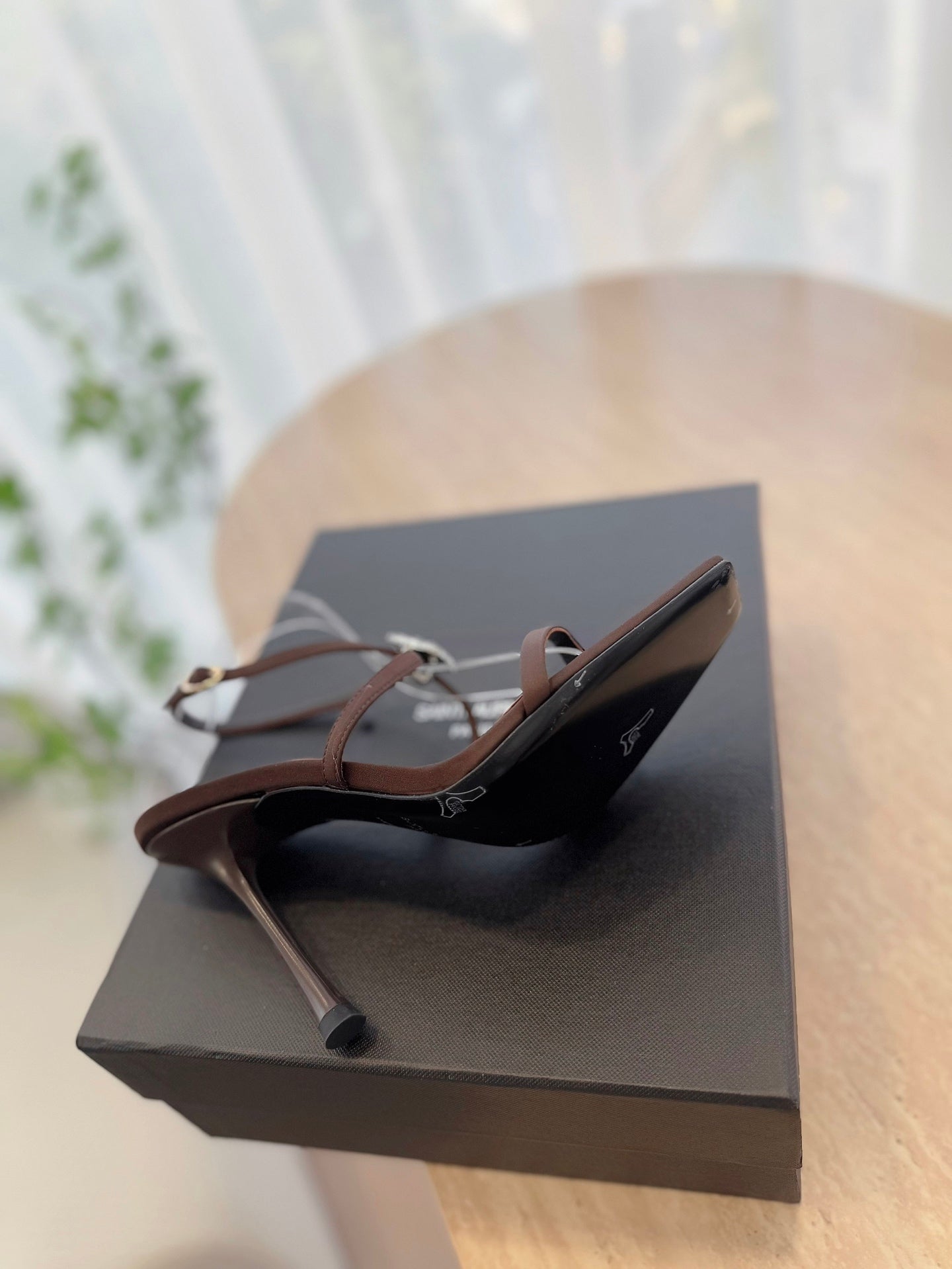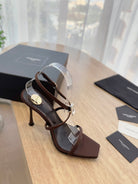 HIGH HEEL SANDAL 10 CM IN CHOCOLATE BROWN SATIN CREPE AND CRYSTAL